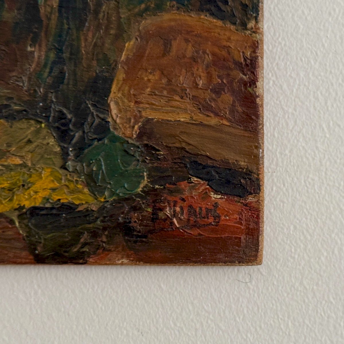Oil on panel seaside rocks by F. Viaus XXth A5650 This work is from the early 20th century, around 1920. It features a beautifully depicted rocky coastline with a lot of charm. We have no certainty regarding the signature of this quality work. The piece has not been restored or cleaned, so wear and tear from time must be accepted. Our photos allow you to appreciate the quality of the work. For the condition, please refer to the detailed photos. Do not hesitate to zoom in. The photos are an integral part of the description. Dimensions: Height: 10.2 cm Width: 18.5 cm Thickness: 3 cm S: WPFJ3FG7 I remain at your disposal for any questions. Authenticity: Unknown Weight: Unknown Type: Oil Height: 10.2 cm Style: Unspecified Genre: Unknown Length: cm Features: Signed, On panel Width: 18.5 cm Theme: Landscape