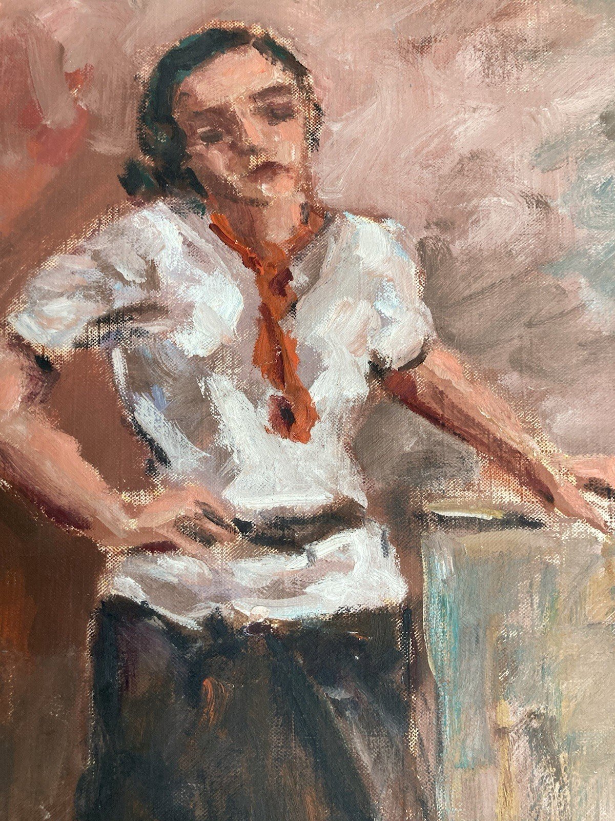 Oil Painting Portrait Woman Standing 1980 Art To Identify Expressionism