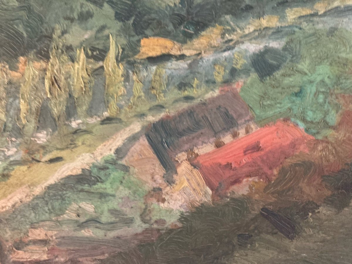 Oil Painting Landscape on Cardboard Donkey Art Village Old 1920 to Identify
