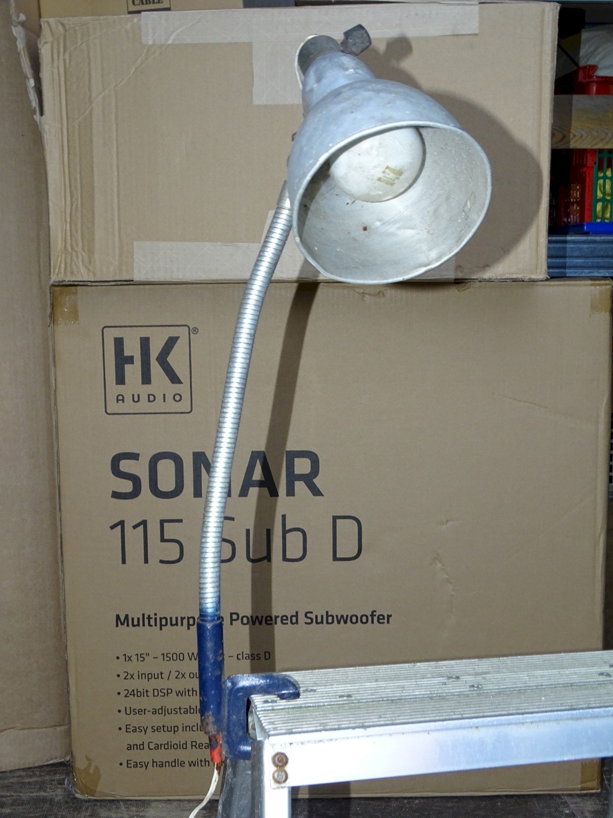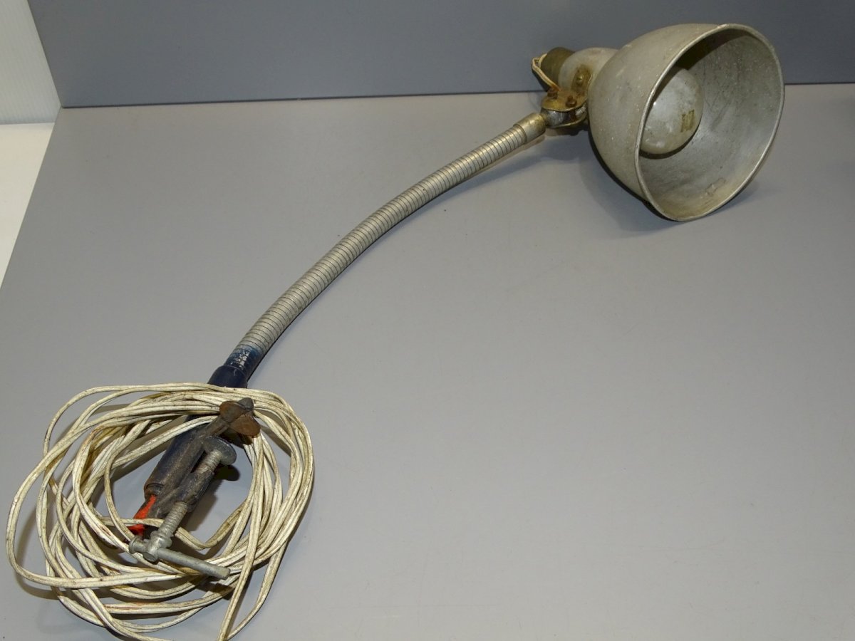 Vintage aluminum lamp from the 50s - flexible arm (more or less) - clamp fixation - globe with dents - (photos) - pure find, barn sale, to restore & clean - does not have a plug - Ref. 1V240718/384 Height 51.5 cm - Globe Length 14.9 cm Diameter 12.5 cm - Weight 642 g For contact, my email address: SHIPPING POSSIBLE THROUGH MONDIAL RELAY or COLISSIMO upon request VERY GOOD PACKAGING GUARANTEED THANK YOU for CAREFULLY LOOKING AT ALL the PHOTOS as THEY ARE AN INTEGRAL PART of the DESCRIPTION and ALLOW YOU TO SEE the OBJECT AT ITS BEST with ITS POTENTIAL LITTLE DEFECTS -