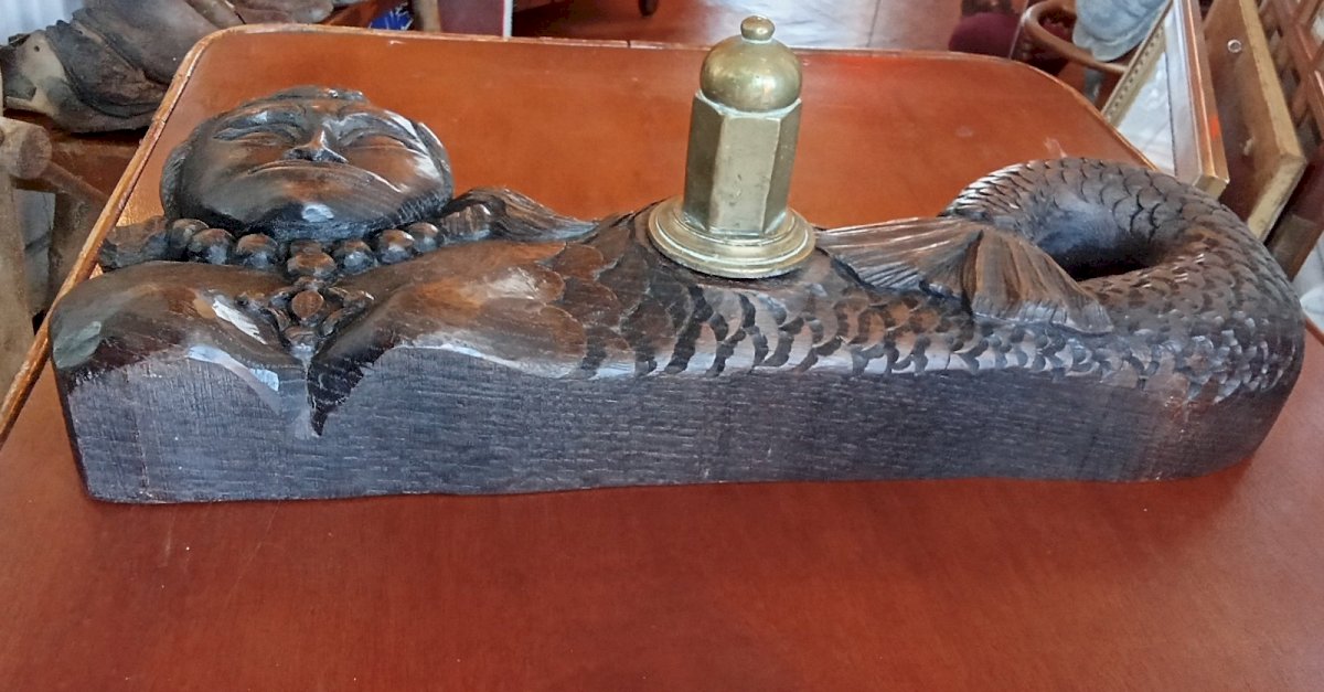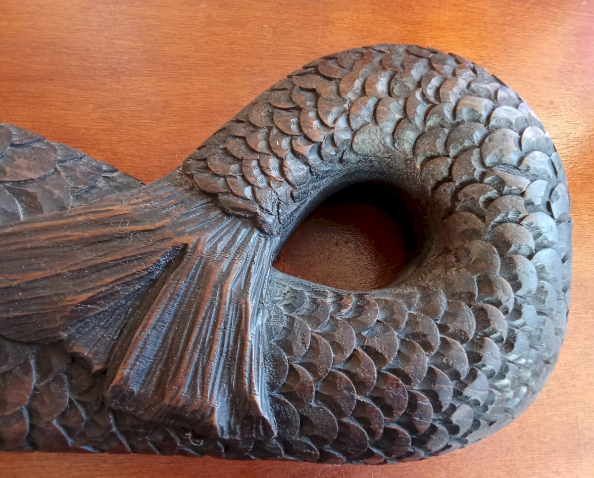 Old key or barrel door key, cask, barrel, or wooden keg Lock of cask Folk art object Used to close the small gate that allows entry into the cask for cleaning. Mermaid Good condition Height 24 cm Length 50.5 cm Depth 7.5 cm Material: Wood