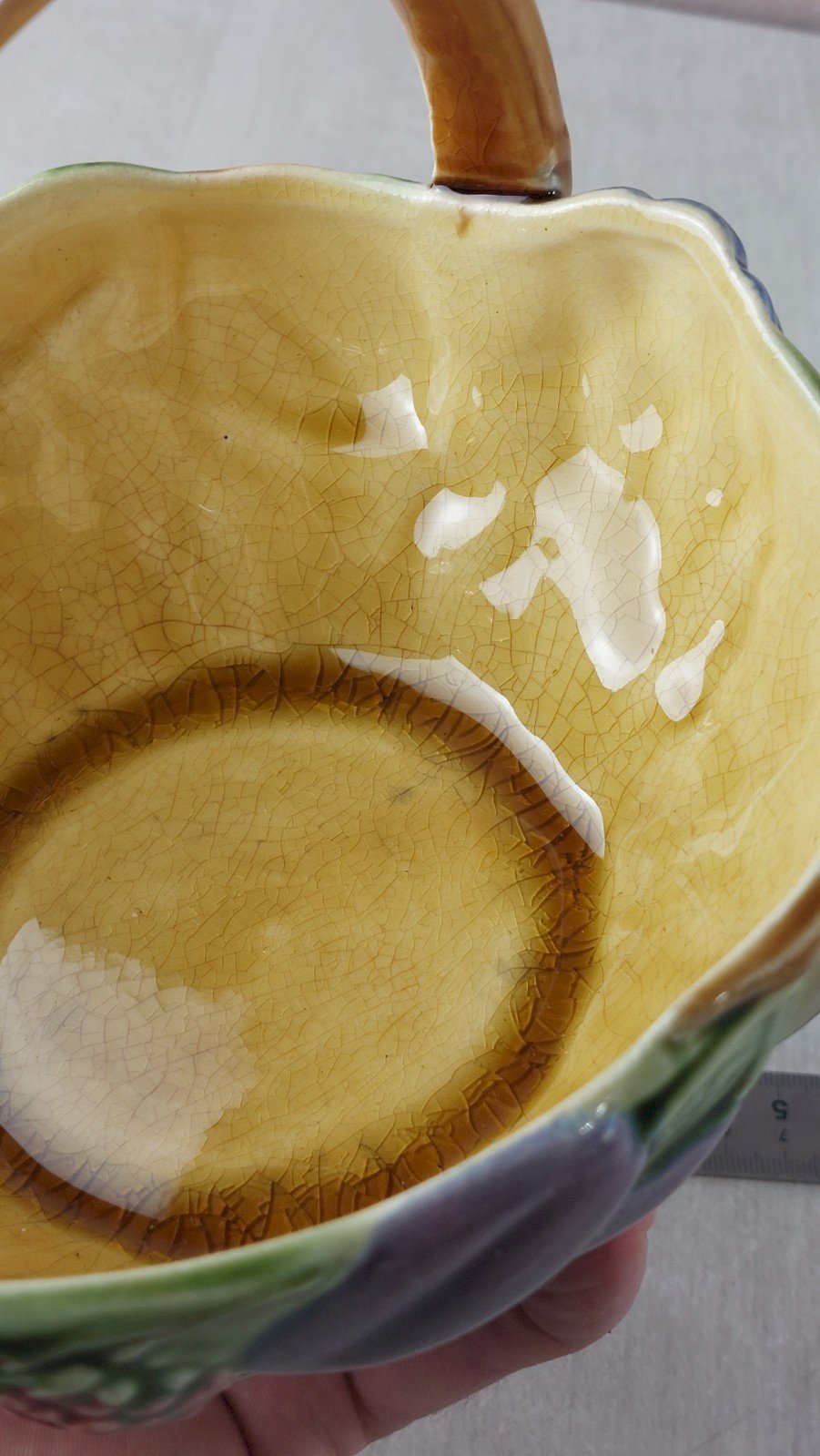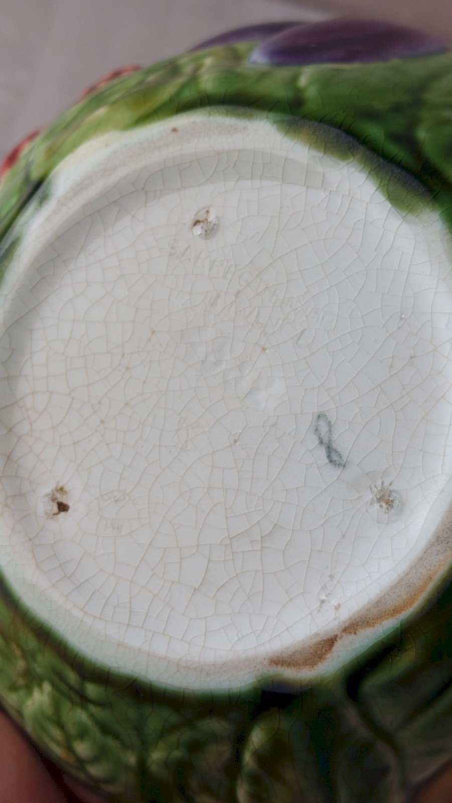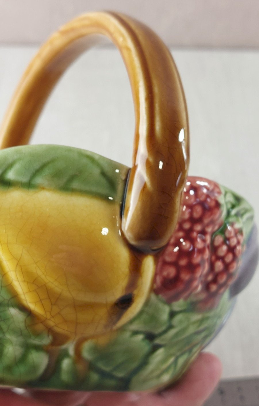 Old basket / bowl, fruit decoration, in Sarreguemines majolica in very good condition, no cracks or chips signed Sarreguemines France diameter 17 cm height without handle 7.1 cm see pictures Check out my other items! Reduced shipping costs for combined purchases Country of origin: France