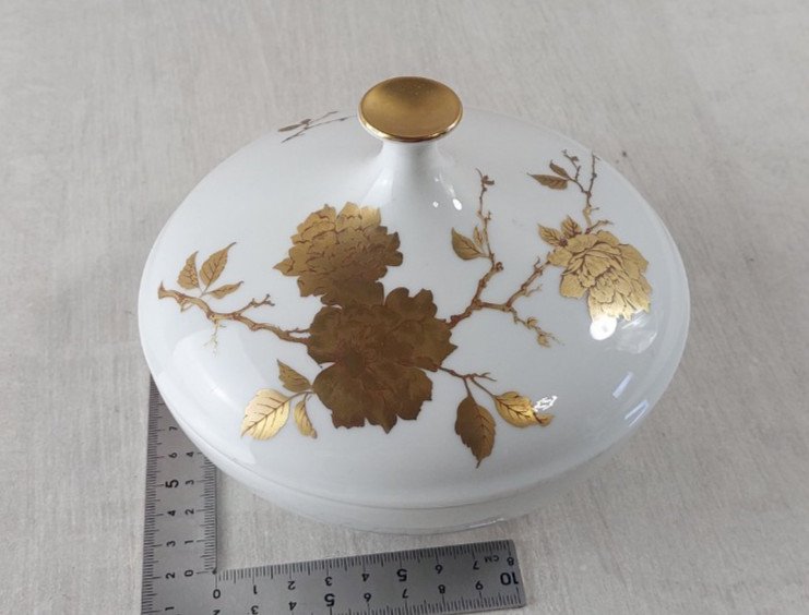 Vintage box / candy dish, porcelain, gilding, AK Kaiser in good condition, no cracks or chips signed AK Kaiser diameter 15 cm height 11 cm see photos Check out my other items! Reduced shipping costs for combined purchases Brand: AK Kaiser Country of origin: Germany