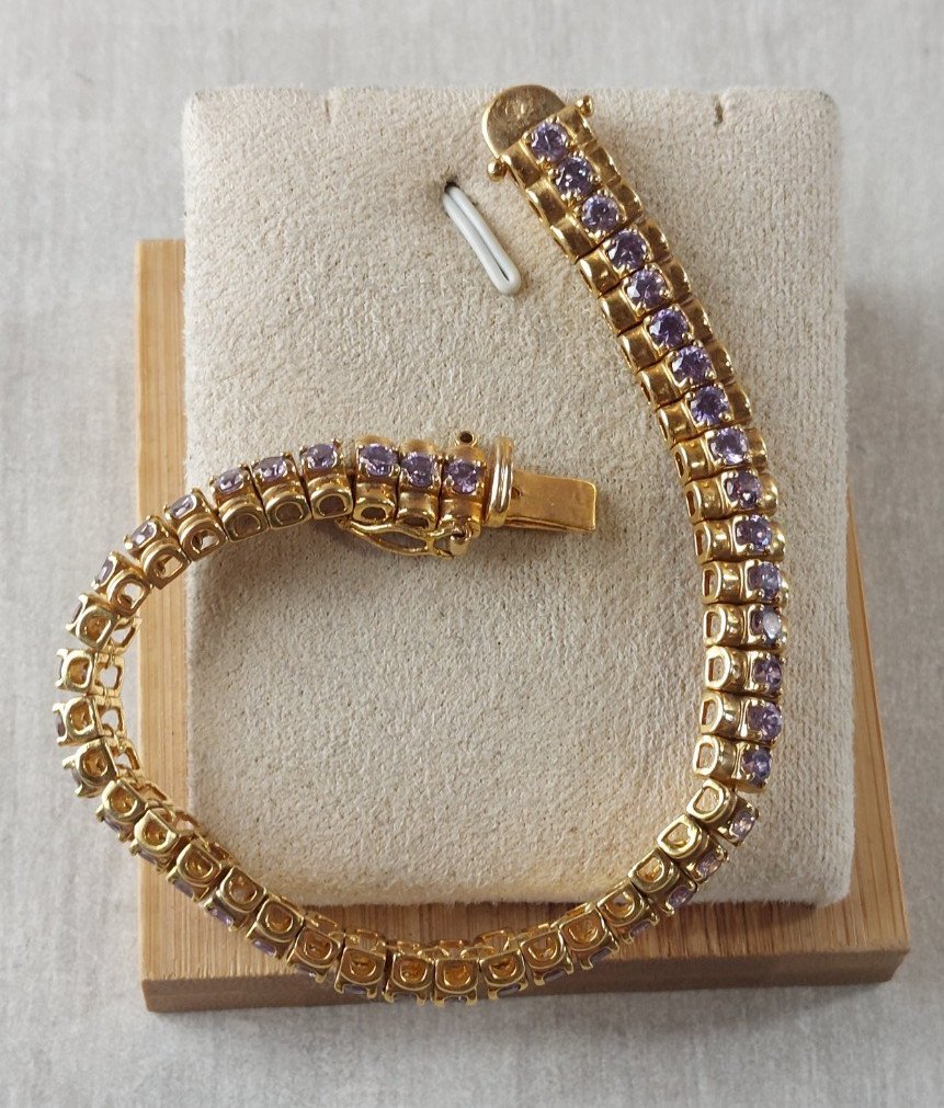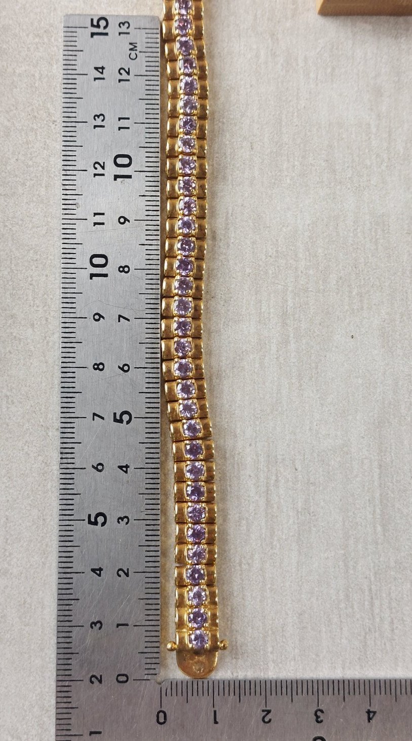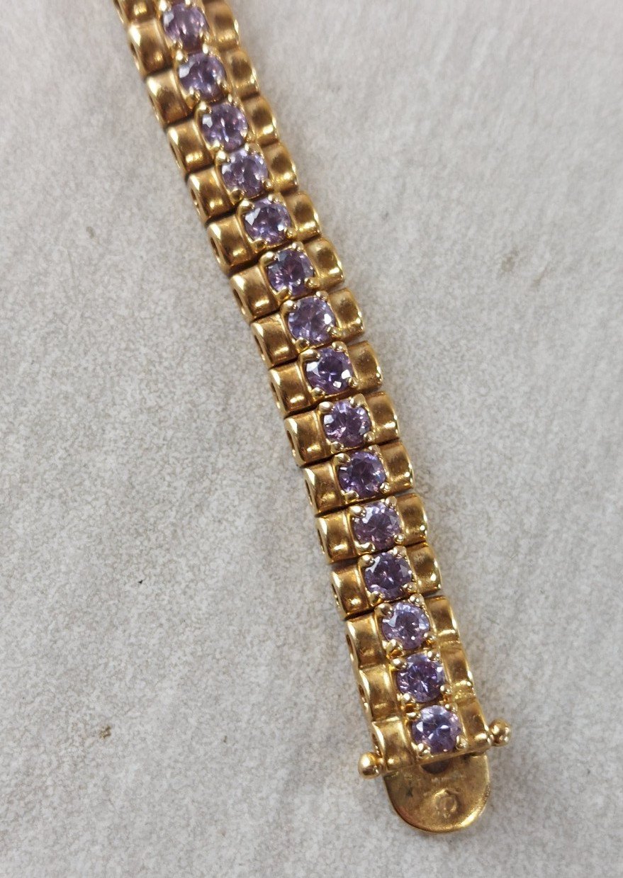 Vintage purple rhinestone bracelet, made of gold-tone metal, in good condition with a star/sun stamp, width 0.8 cm, length 19 cm, see photos. Check out my other items! Discount on shipping for combined purchases. Condition: Used, item has been worn, potential imperfections. Material: metal. Country of origin: France.