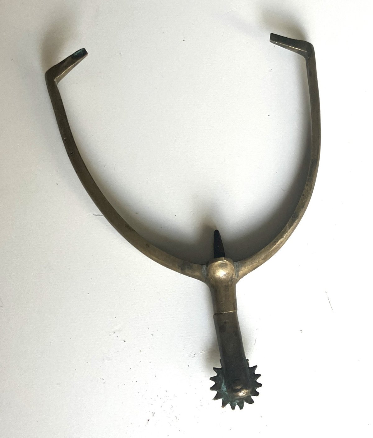 old brass wheeled spur approximately 10.5 cm in length good general condition shipped with tracked letter Material: Brass