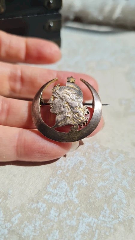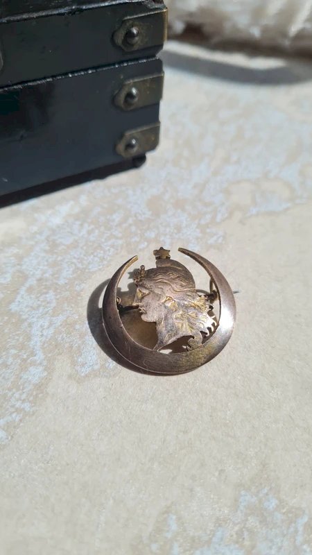 old brooch late 19th enamel on vintage gold plated, charm collection