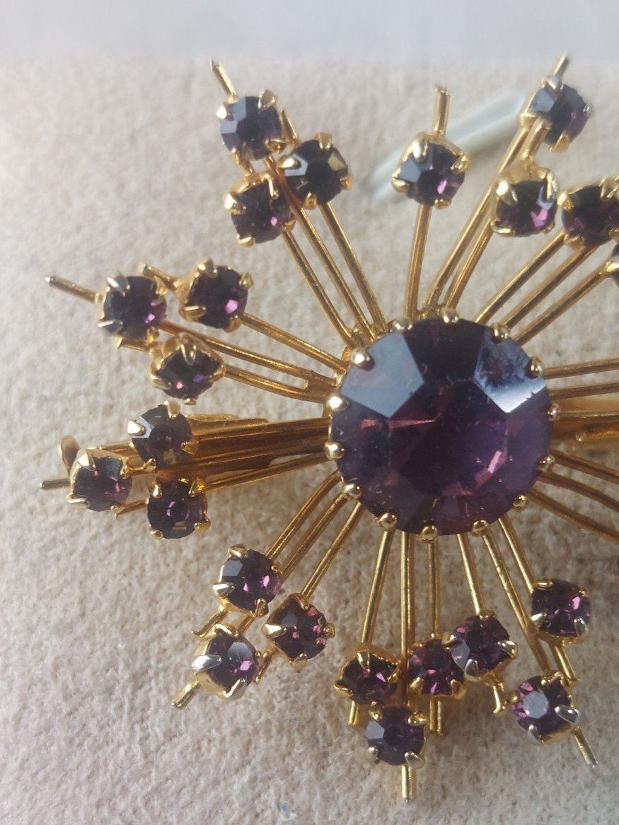 Vintage / Art Deco old brooch, rhinestone decoration in good condition, unmarked dimensions 3.9 cm X 3.9 cm see photos Check out my other items! Shipping discount for combined purchases Condition: Used Item has been worn. Any imperfections. Type: Brooch Dominant color: Gold Material: metal