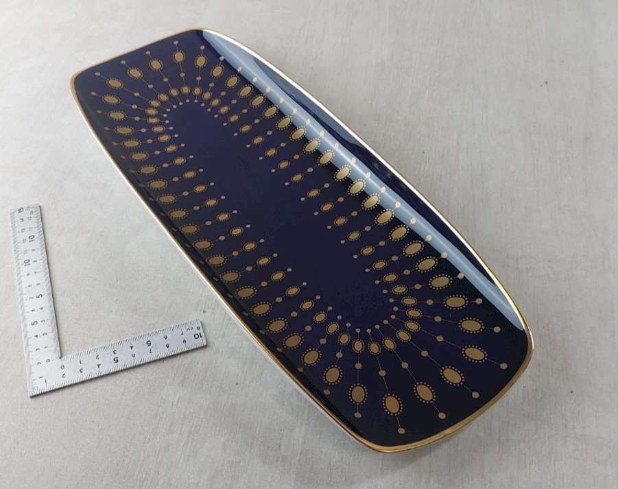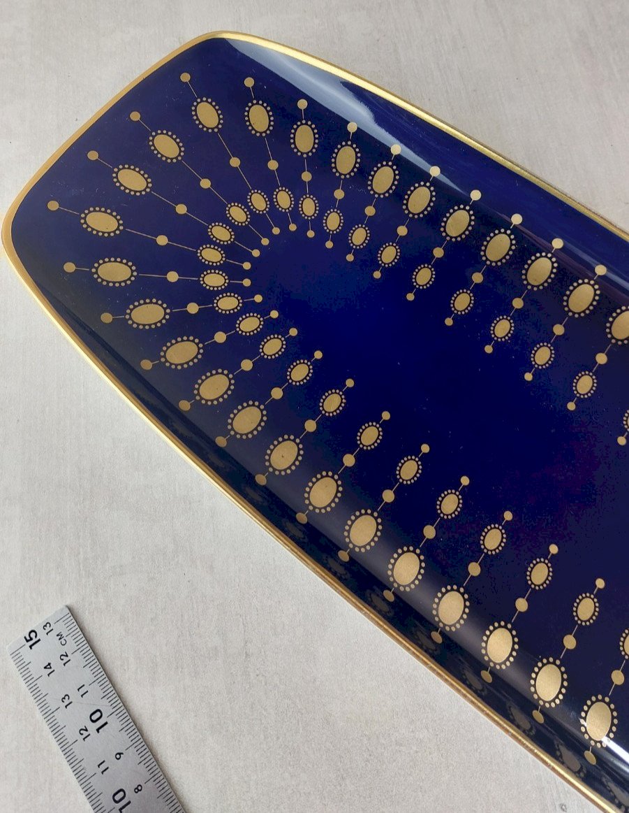 Antique cake plate, porcelain, Echt Kobalt, Hutschenreuther in good condition, no cracks or chips, some wear on the gilding signed Hutschenreuther Echt Kobalt dimensions 10.5 cm X 15 cm see photos Check out my other items! Discount on shipping for bulk purchases Brand: Hutschenreuther Country of origin: Germany