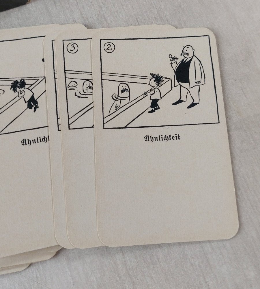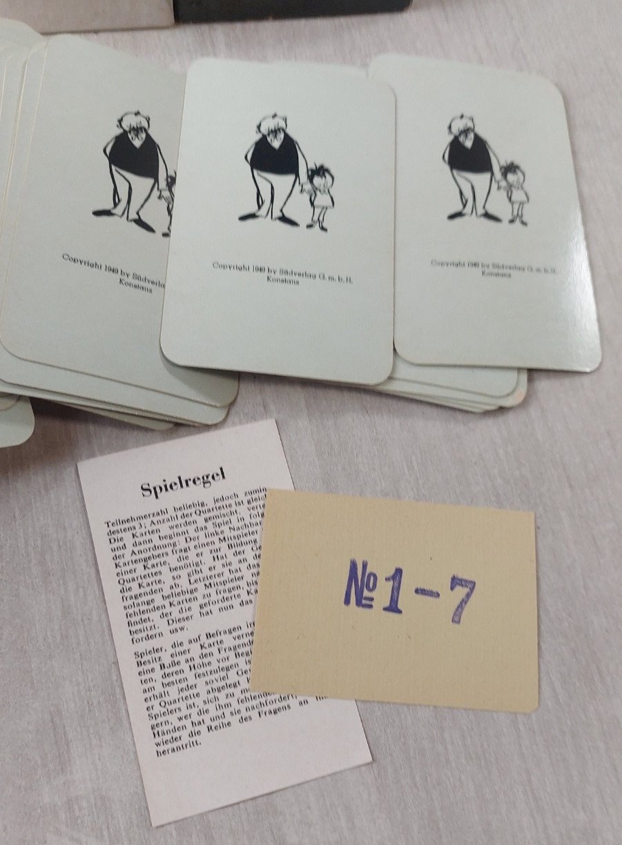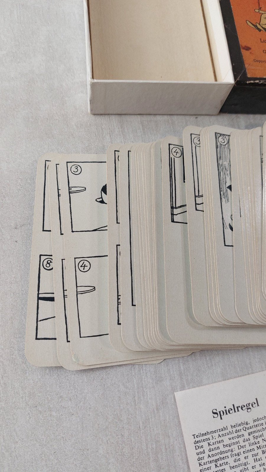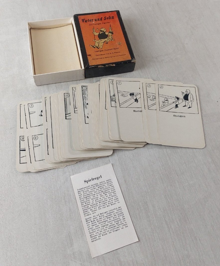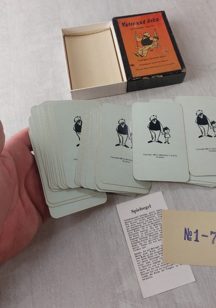 Old card game Quartet, Father and Son, 1949. Card game in very good condition, some wear on the box. Box dimensions 11.5 cm x 8 cm height 2.9 cm. See photos. Check out my other items! Discount on shipping for combined purchases. Condition: Used. Item has been used. Any imperfections. Brand: Südverlag. Country of manufacture: Germany. Theme: Cards.
