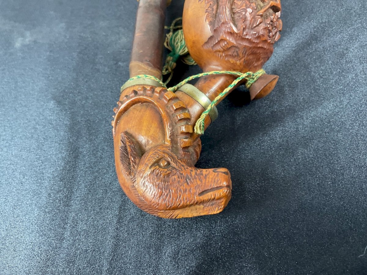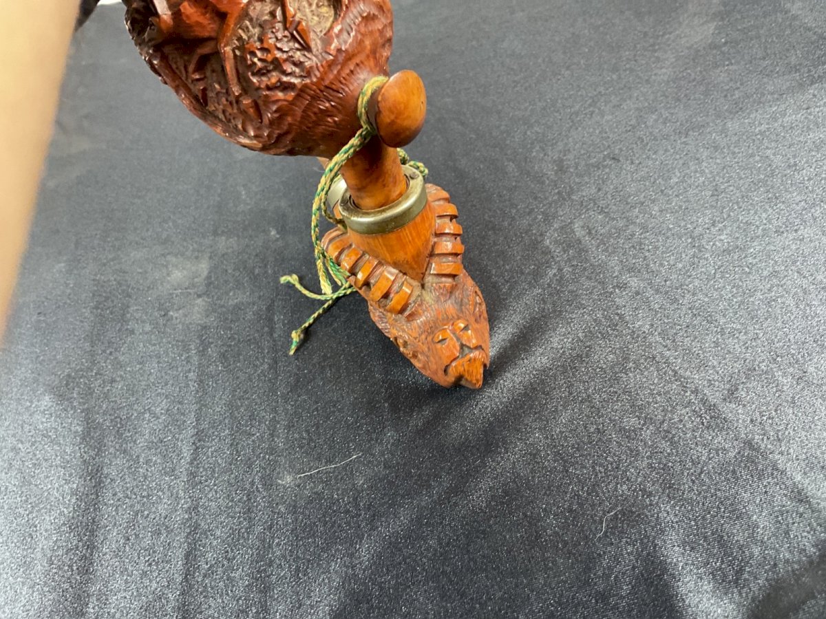 Antique Bavaria Carved Wooden Pipe Hunting Folk Art Deer Condition:Used: Item that has been used. Please refer to the seller's description for more details...Used: Item that has been used. any imperfections. Period:Vintage (1900-1970) Type:pipe Material:Wood Style:Carved, Engraved