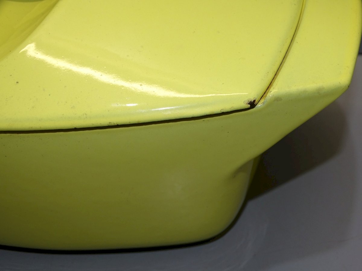 vintage Le Creuset pot designed by Raymond Loewy in yellow with some enamel chips and small rust spots - signs of use (see photos) - attic juice, needs cleaning (see photos) - Ref. 42240725/89 - Length 32 cm - Width 21.3 cm - Max height 15 cm - Edge height 10.2 cm - Weight 4.182 kg - SHIPPING via Mondial Relay or Colissimo upon request - GUARANTEED very protective PACKAGING - PLEASE carefully REVIEW ALL PHOTOS as THEY ARE AN INTEGRAL PART of the DESCRIPTION and ALLOW YOU TO SEE the ITEM AT ITS BEST - Condition: Used: Item that has been used. Item showing some superficial signs of wear, ...Used: Item that has been used. Item showing some superficial signs of wear, fully operational and functioning correctly. It may be a demonstration model or an item returned to the store after a short period of use. any imperfections. Color: Yellow Type: Pot, pan Brand: Le Creuset Compatible stove type: Electric, Gas, Induction