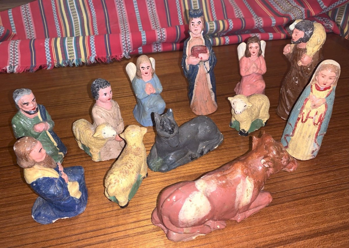 Old Christmas nativity scene Painted plaster figurines Set in good condition Height of the figures: from 10.5 to 15cm Length of the animals: from 8 to 15cm Authenticity: Original Type: Tableware, Kitchen Origin: France Country of origin: Metropolitan France