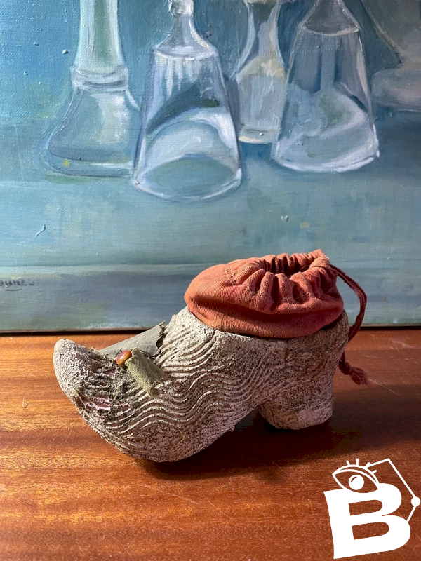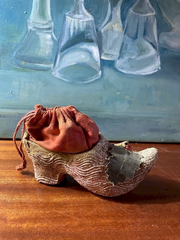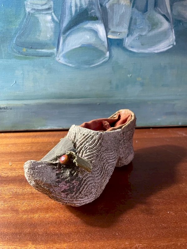 - ANCIENT VARNISHED WOODEN CLOG MONEY BOX CHILDREN'S ROOM DECOR COLLECTION D