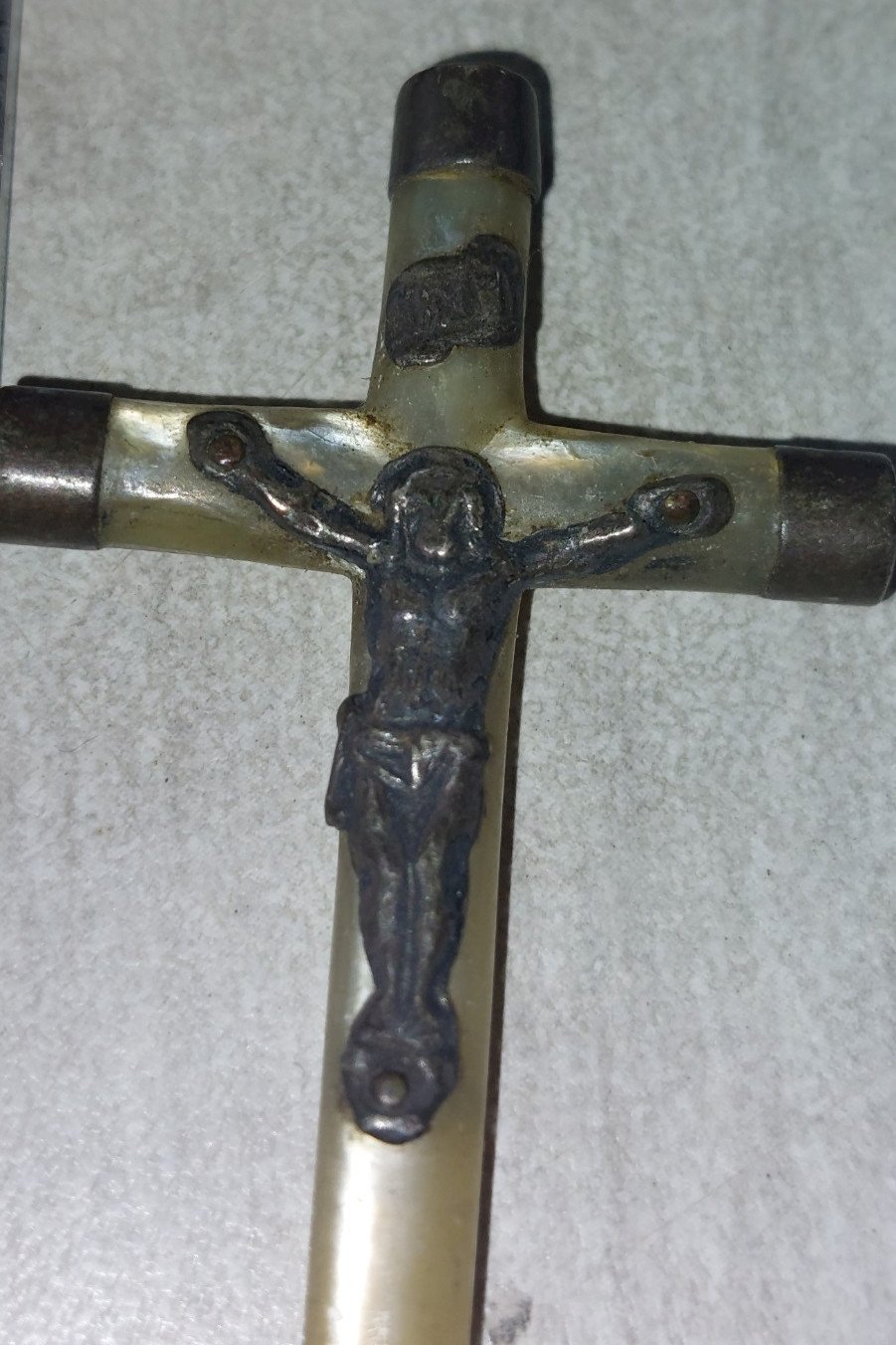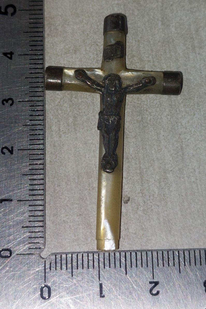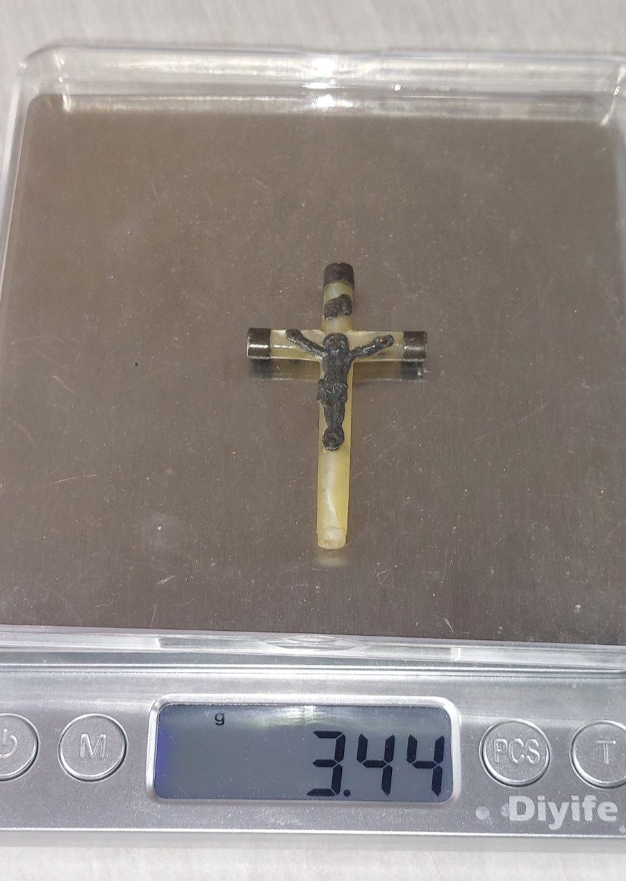 Old pendant / cross / crucifix, made of mother-of-pearl and silver in good condition, missing a silver decoration at the bottom, no visible hallmark, size 4.7 cm x 2.7 cm, weight 3.44 g, see photos. Check out my other items! Reduced shipping costs for combined purchases. Condition: Used. The item shows possible imperfections. Type: Christianity. Material: Silver. Country of origin: France.