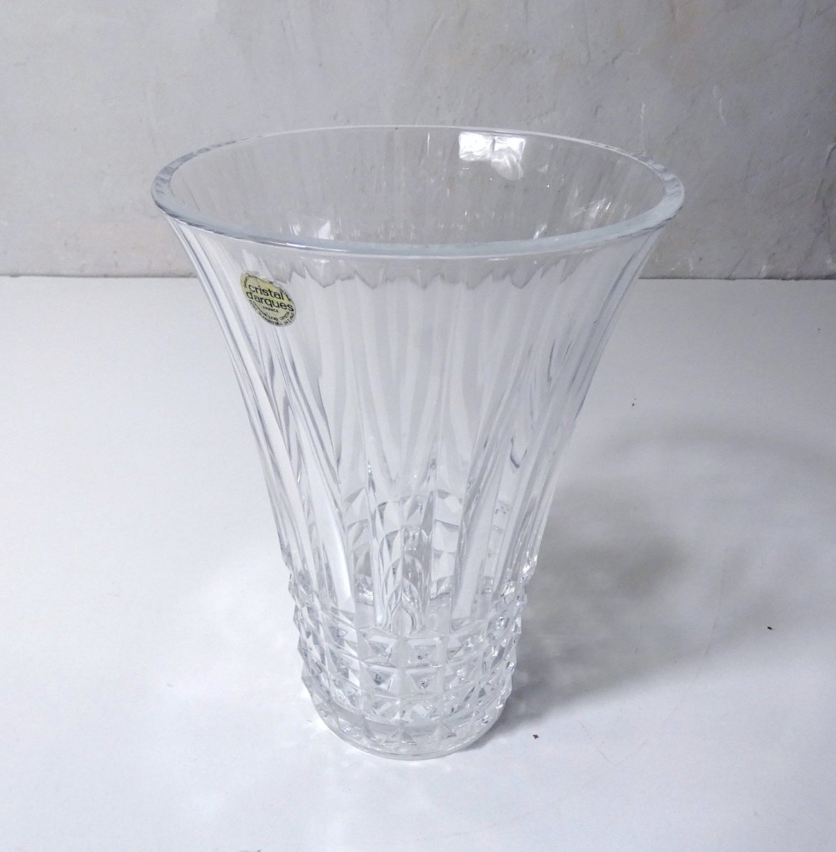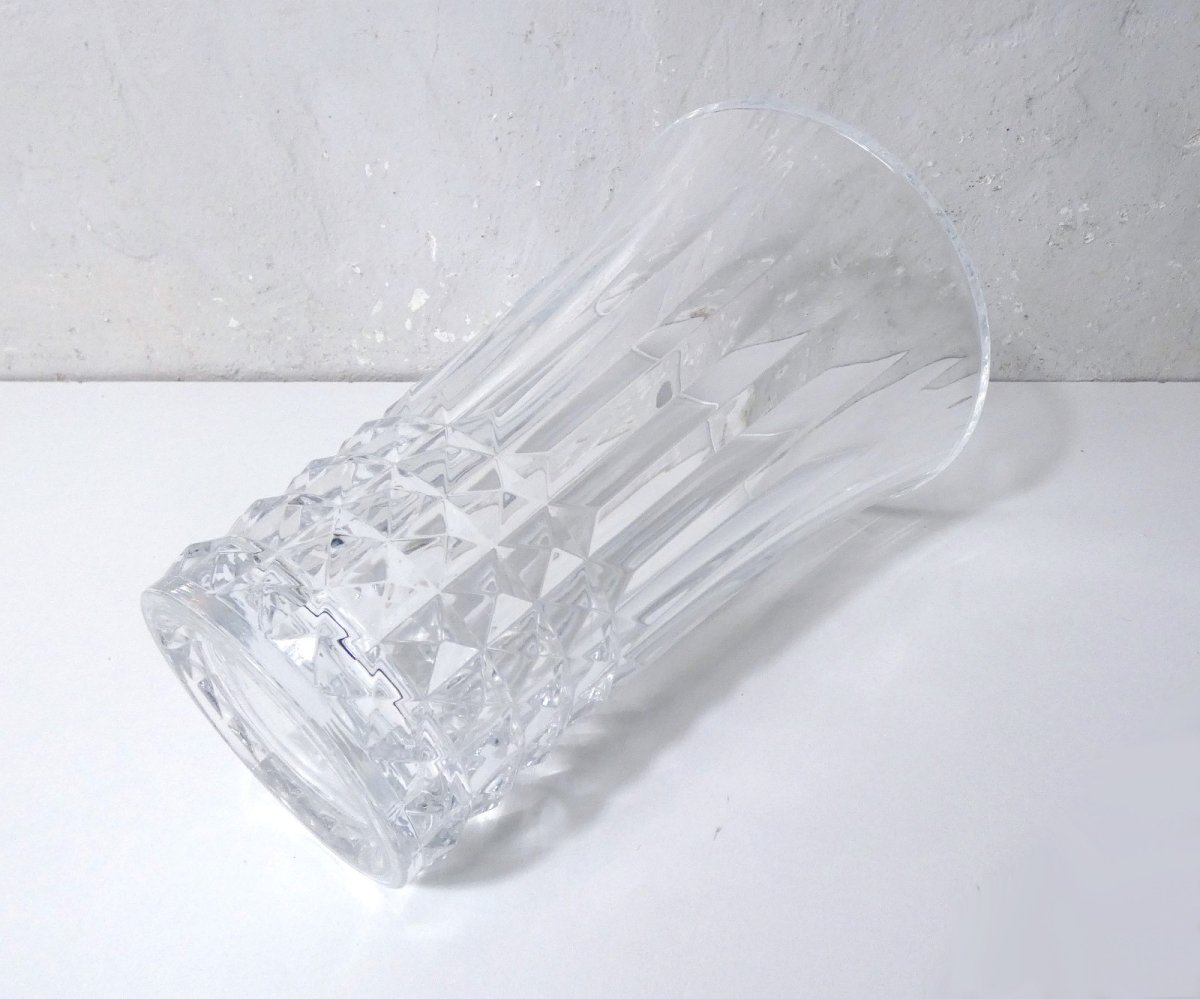 Very nice Arques crystal vase (24%), This is a flared-shaped vase that one must have in their collection because its shape suits many bouquets and arrangements. Its sobriety and elegance will perfectly highlight a beautiful bouquet of seasonal foliage, for example. The refinement of the crystal contrasts very well with the simple beauties of nature. Height 25 cm, diameter 17.5 cm. It is in excellent condition.