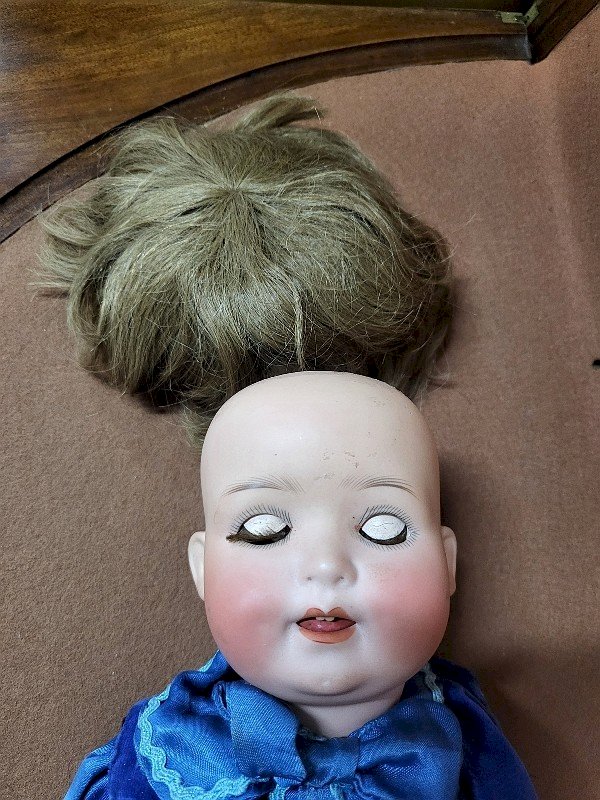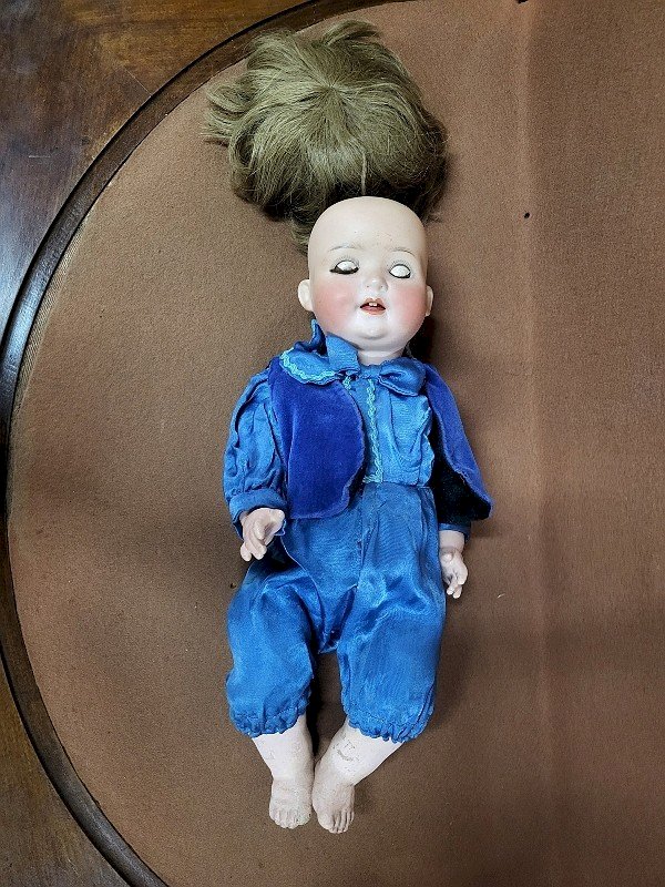 Beautiful antique doll with a porcelain head HEUBACH KOPPELSDORF 300.0 Germany, she is in good condition with just a few signs of wear on the body. The hair needs to be reattached, the clothes need to be cleaned, and the socks are missing. The eyes close and they work, but they need slight adjustment. She measures 39 cm tall. I remain at your disposal for any questions either by email or by phone: . For larger photos, please send me your email. Condition: Used item. Signs of previous use may be present. Material: Porcelain.