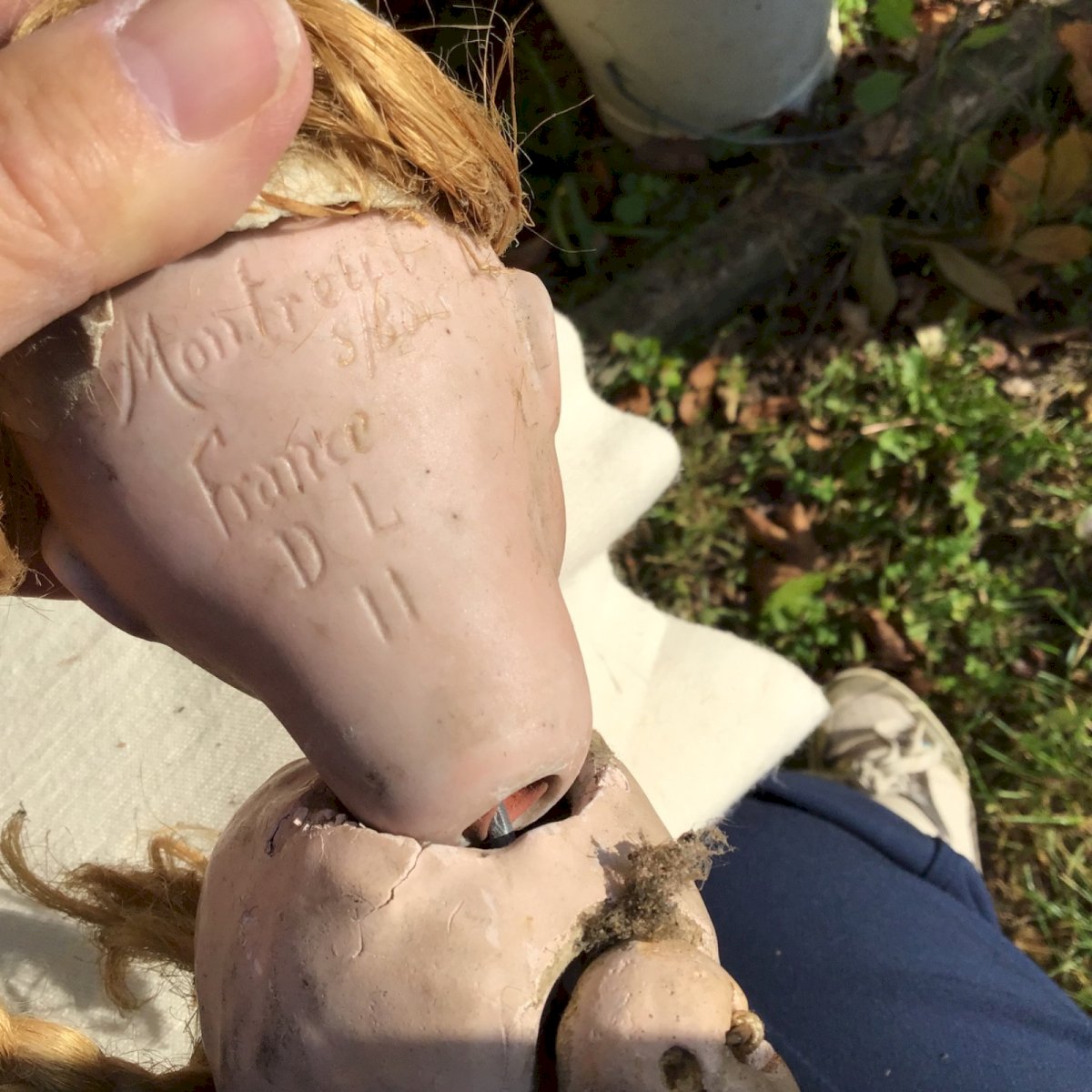 Old Doll from MONTREUIL sous bois. Factory of Jumeau dolls DL. One arm is missing, the head is very beautiful porcelain with nice teeth. No chips and the body has paint loss. Height 38 cm sold as is. Condition: Used item that has been used. Possible imperfections. Country of origin: France Brand: Jumeau Age range: 17 years and older Size: 40 cm Material: Bisque, Ceramic Era/Year: 1900 Gender: Girl Model: Montreuil Type of doll: Porcelain doll.