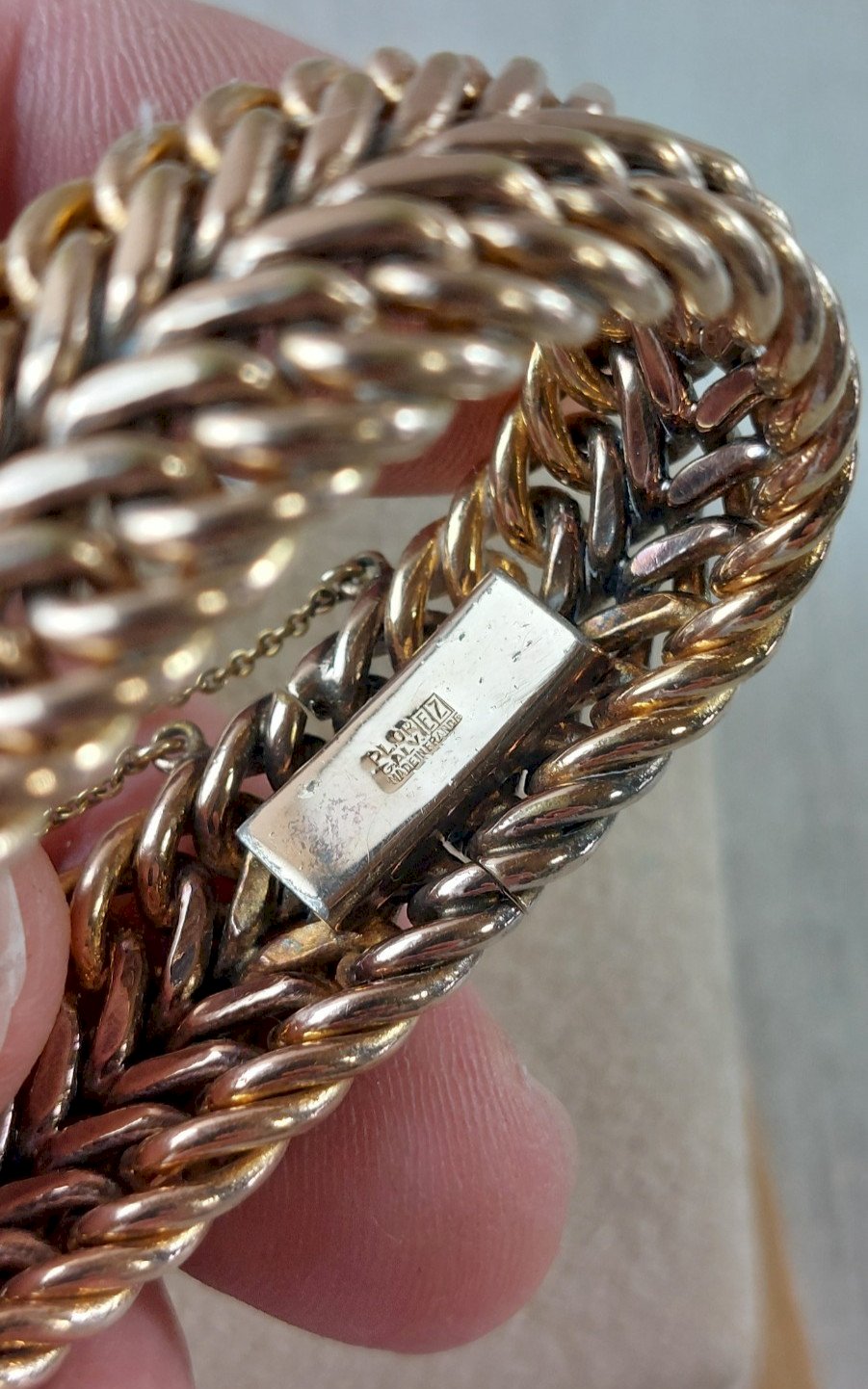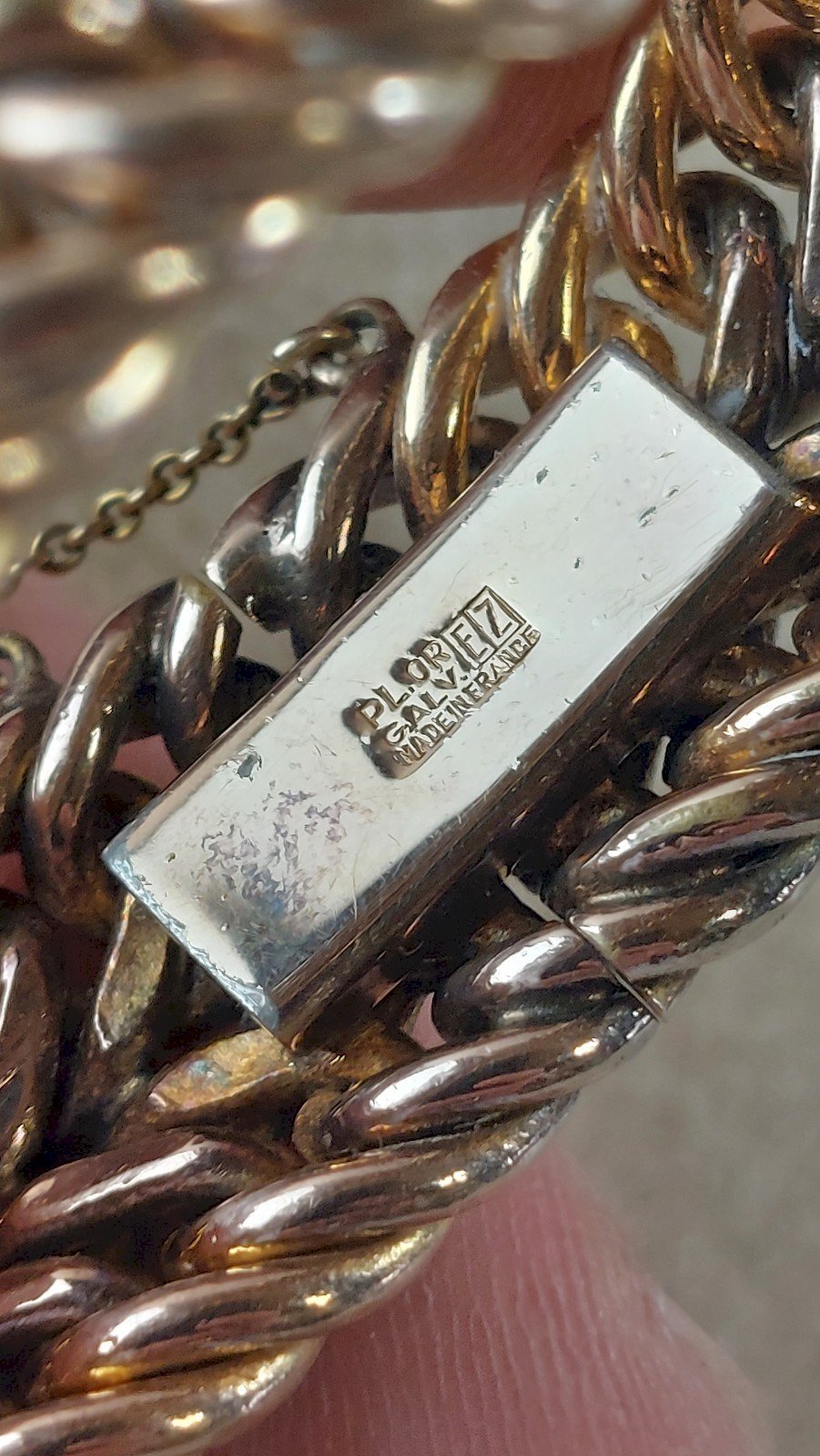 Vintage double chain bracelet, gold-plated, EZ Made in France in good condition with a safety chain marked gold-plated galvanized, EZ Made in France width 1.7 cm total length 18.5 cm see photos Check out my other items! Reduction of shipping costs for combined purchases Condition: Used Item has been worn. Any imperfections. Brand: EZ Metal: gold-plated