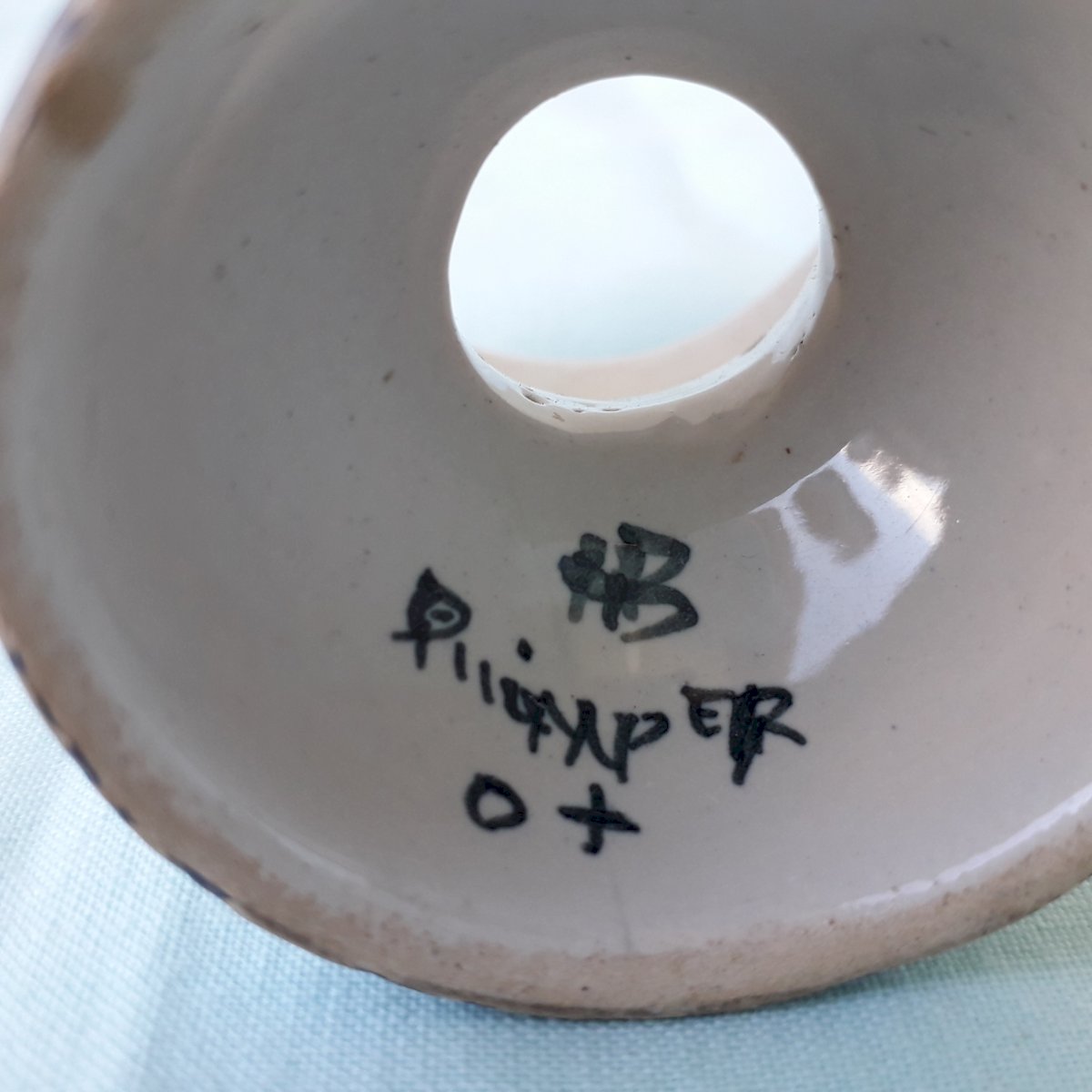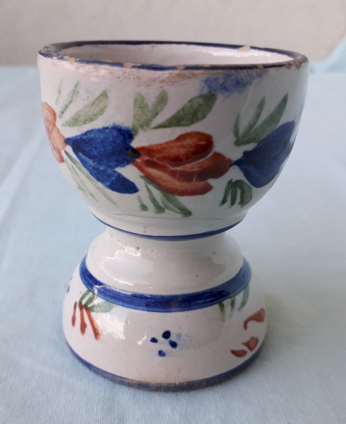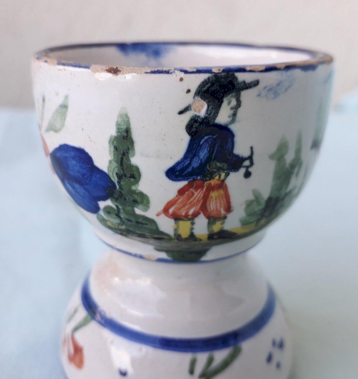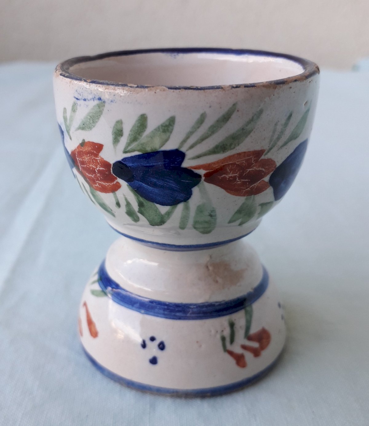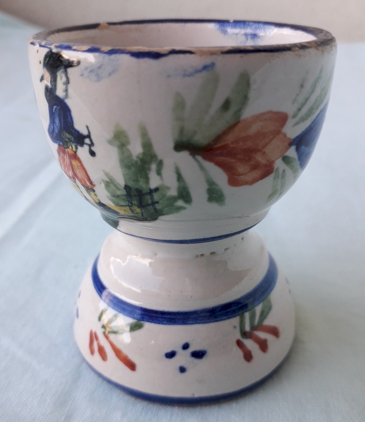 Old diabolo egg cup from Quimper, marked "HB Quimper O +".