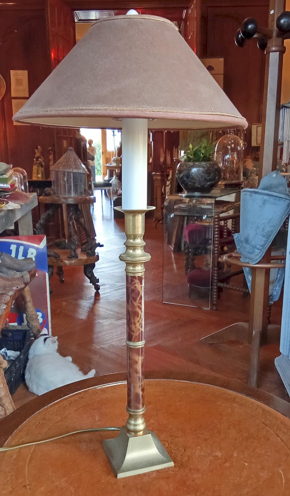 Vintage Table Lamp Empire Style Fabric Shade Good condition Works Height with shade 51 cm Base dimensions 7.5 cm x 7.5 cm