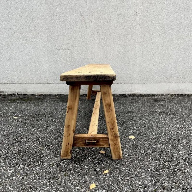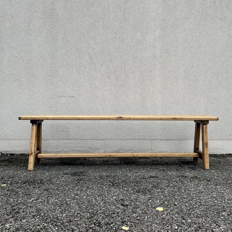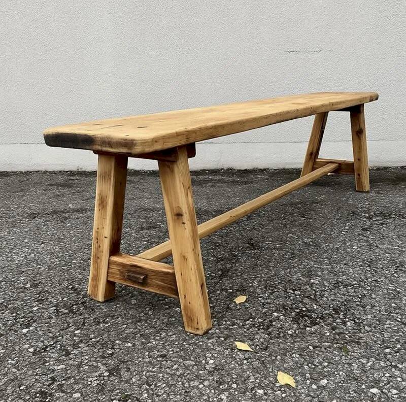 This vintage farmhouse bench, made of solid wood, exudes simplicity and authenticity.