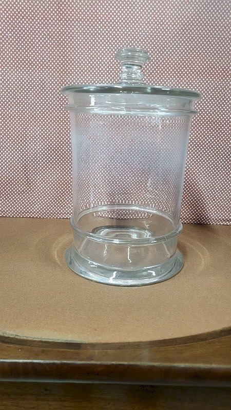 Nice antique glass candy jar, it is in very good condition, measuring 30.5 cm high and 19 cm in diameter.