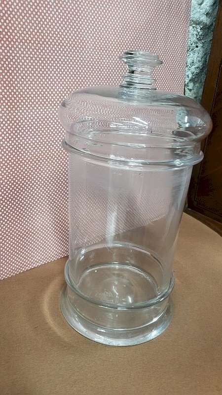 Beautiful antique glass candy jar, it is in very good condition, measuring 36.5 cm high and 19 cm in diameter.