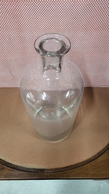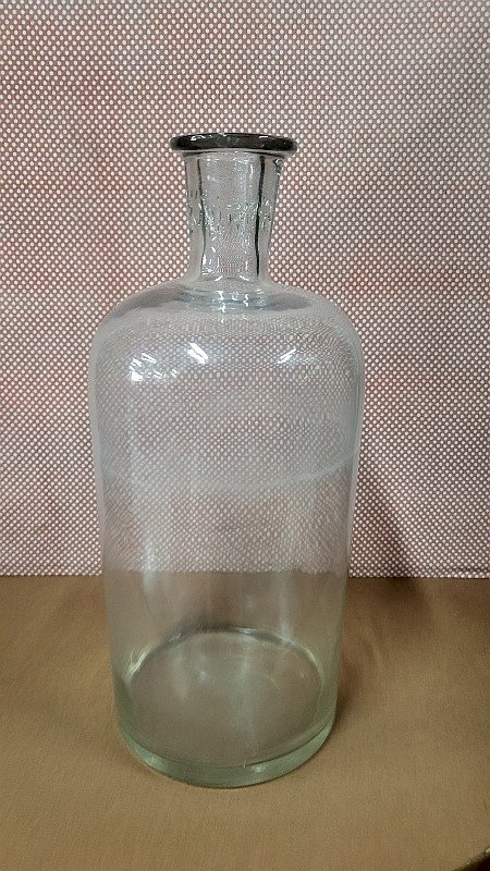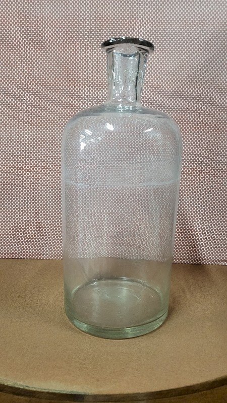 pretty jar or old glass bottle it is in very good condition it measures 39.5 cm in height by 17 cm in diameter and 3.5 cm opening diameter