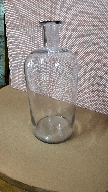 beautiful jar or antique bottle made of glass, it is in very good condition, it measures 31 cm in height, 13 cm in diameter, and 3 cm in diameter at the opening