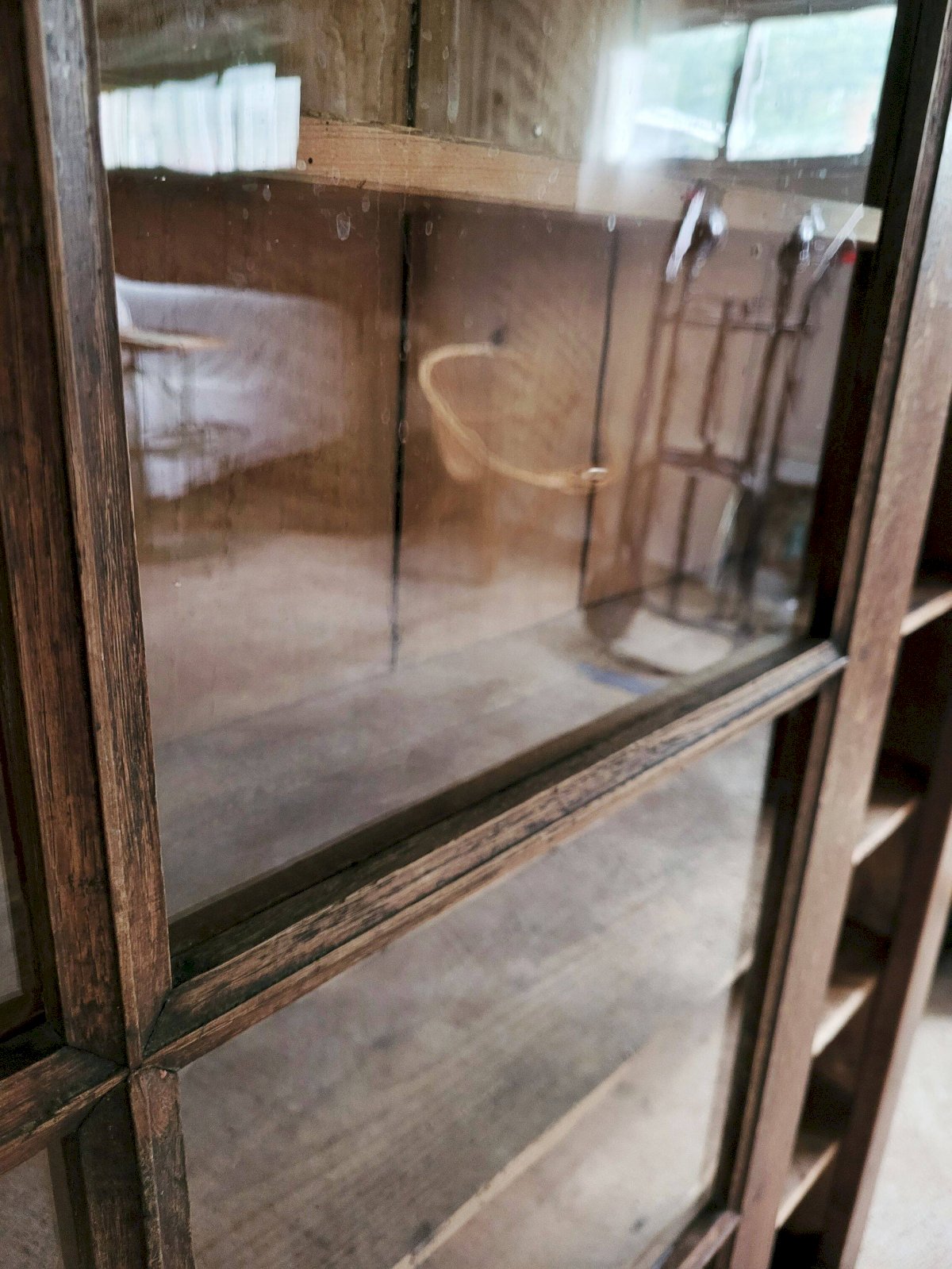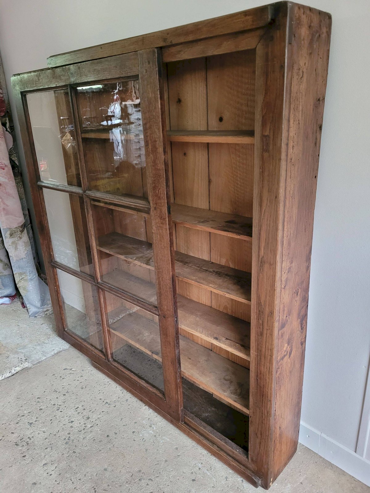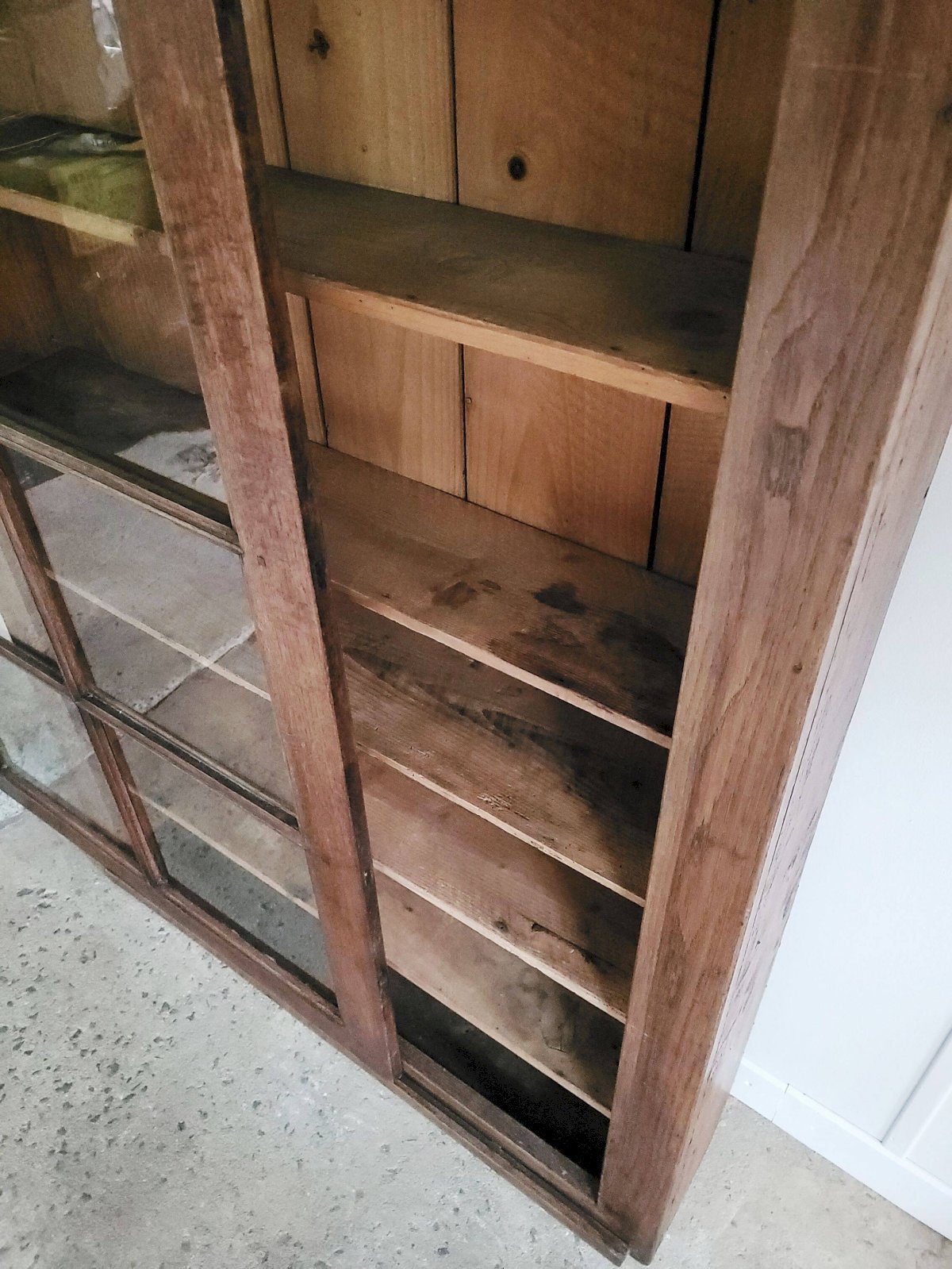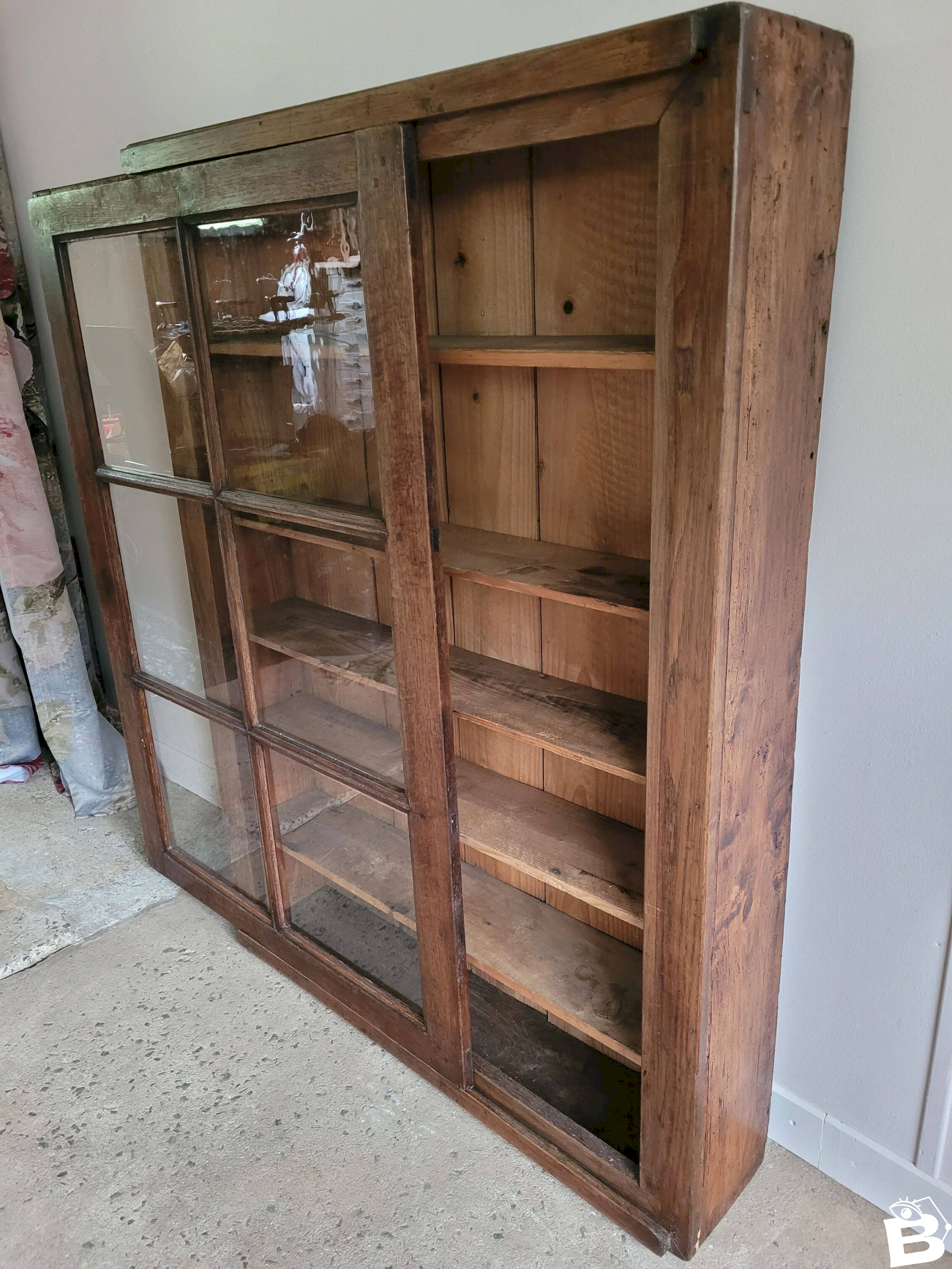 The glass is sliding, and the structure is sturdy. In good overall condition (see photos). Dimensions: 97 x 134 x 23 cm (W x H x D). W: 97 D: 23 H: 134