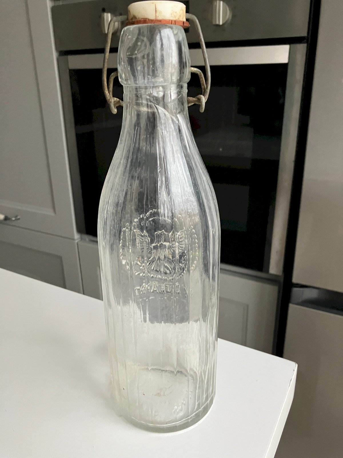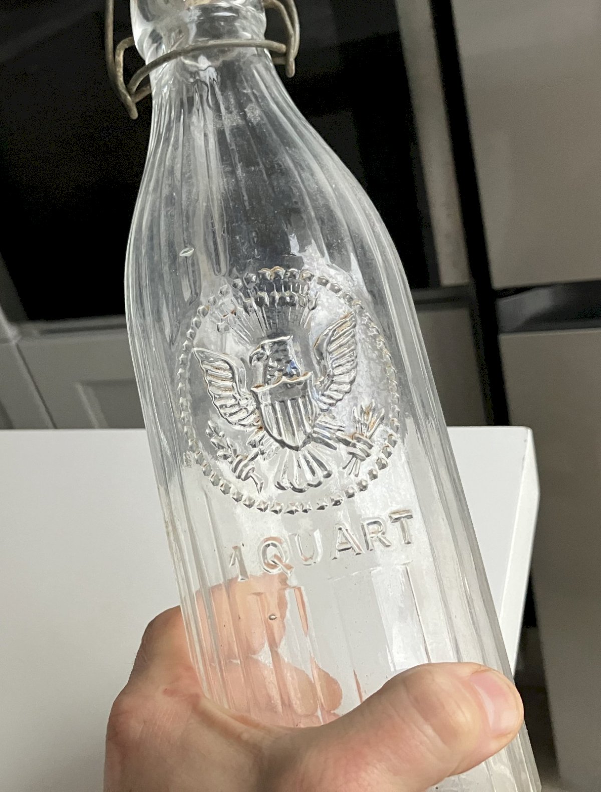 antique glass milk bottle 1 eagle and the inscription on the neck "One Quart" mentions on the bottom "Jar made in Italy" "Crownford China Co 1967" based on what I have seen online, these are reproductions of old milk bottles, reproductions produced in the 1960s/70s for decorative purposes by the American company Crownford China Co based in New York, made in Italy diameter 9 cm height 30 cm good overall condition - in its original state shipping by MONDIALRELAY Condition:Used item that has been used. any potential imperfections. Type: Bottle Original/reproduction: Reproduction Period: 1960s Material: Glass