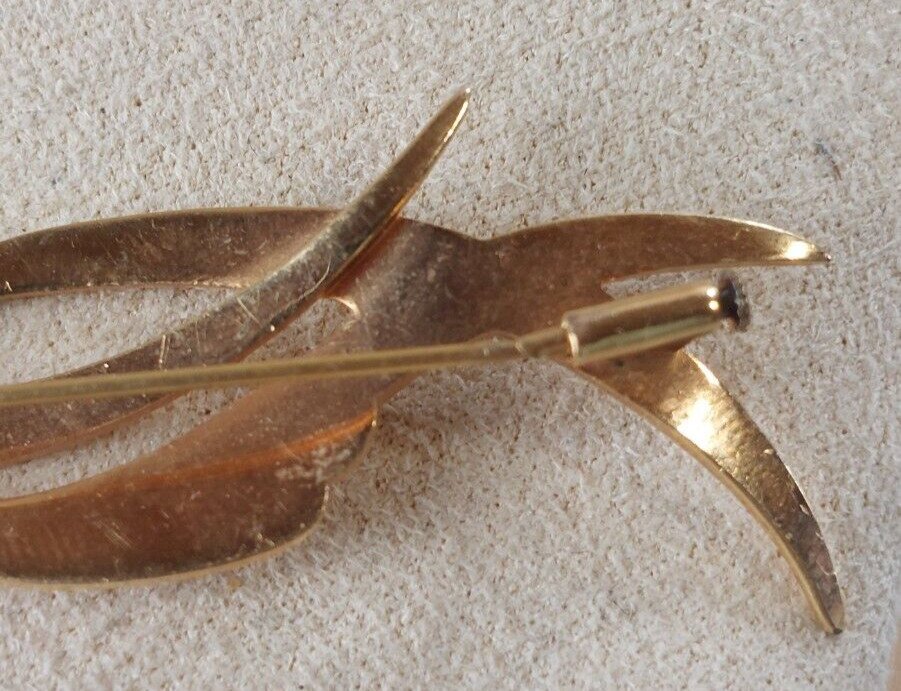 Vintage gold-plated metal brooch, Art Deco, in good condition, unmarked with a square hallmark, dimensions 5.4 cm X 2.1 cm. See photos. Check out my other items! Reduced shipping costs for combined purchases. Condition: Used item that has been worn. Possible imperfections. Type: Brooch. Dominant color: Gold.