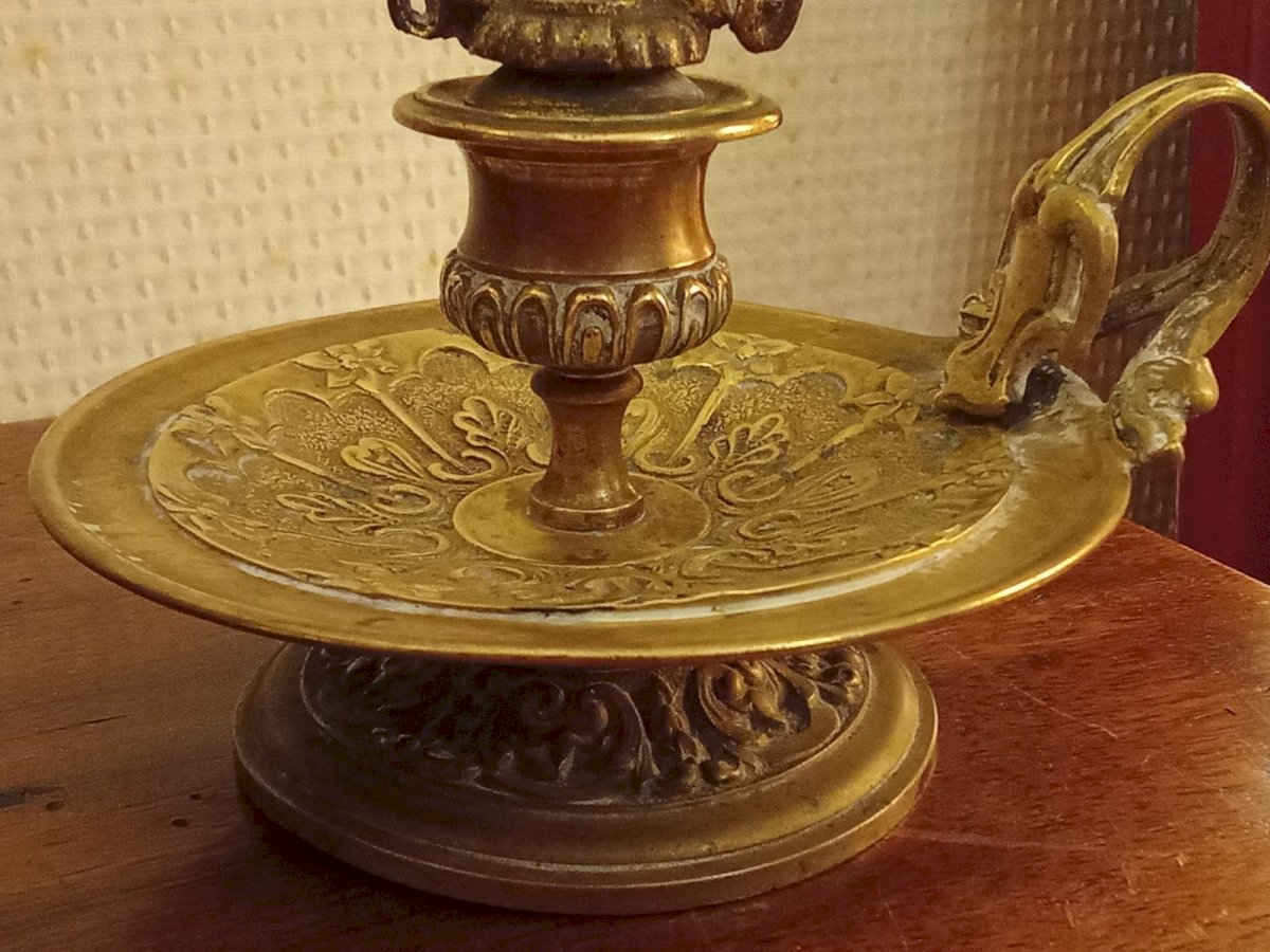 Antique Hand Candle Holder Table Candle Holder Bedroom Candle Holder in Bronze Dating from the 19th Century Very beautiful item Good condition Small irregularity at the base see photo Height 16 cm Diameter 11.5 cm Material: Bronze