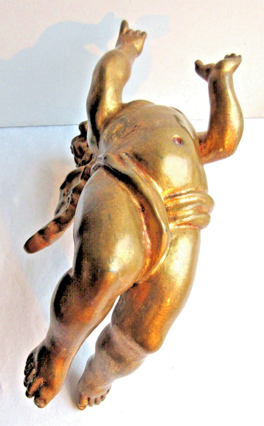 Worldwide sale. Golden resin angel. It can be placed or hung. Dimensions: 30 cm X 13 cm. Height: 14 cm. Good condition. Collectible. The photos complement the description. Authenticity: Original Brand: Manufrance Type: Showcase object, Decorative Period: Art Deco Origin: France Subtype: Figurine, Statue Country of manufacture: France Material: resin Style: sculpture