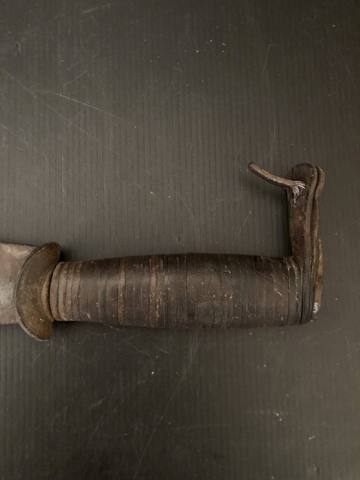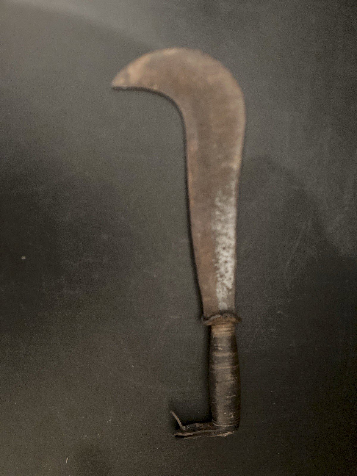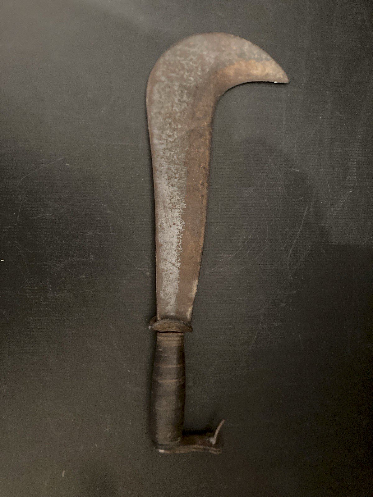 Old Italian-style sickle for collection or use. No markings, used condition, leather handle (see photos). Dimensions: length 45 cm, widest 16 cm, weight 700 g. Look at the photos above, which will also serve as a description. Careful and secure packaging with the option for postage to be selected at the time of purchase for the calculation of shipping costs (otherwise, standard Mondial Relay shipping). Thank you all and happy hunting in my shop. Returns accepted within 14 days from receipt, must be returned in the original packaging and in its initial condition; no refunds for items returned broken or lost by the carrier; return shipping costs are the buyer's responsibility. Authenticity: Original. Type: Professional object. Period: 20th-century design. Subtype: Sickle. Material: Forged iron.