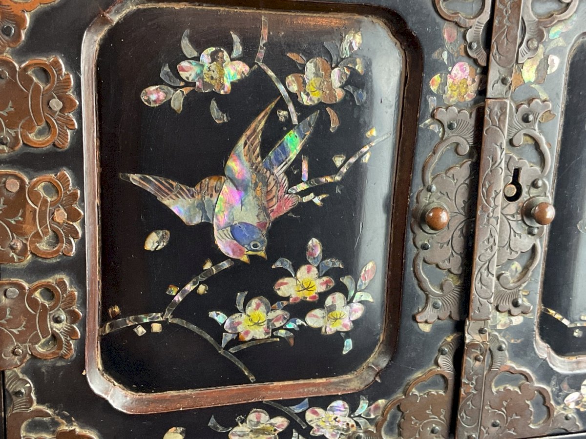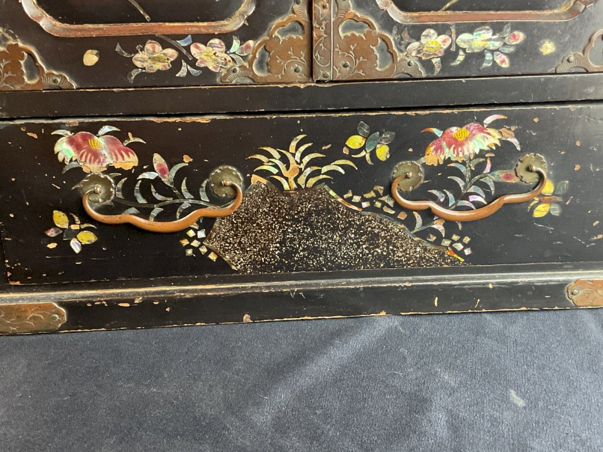 Old Japanese lacquered travel cabinet, Tansu, Meiji 19th century.