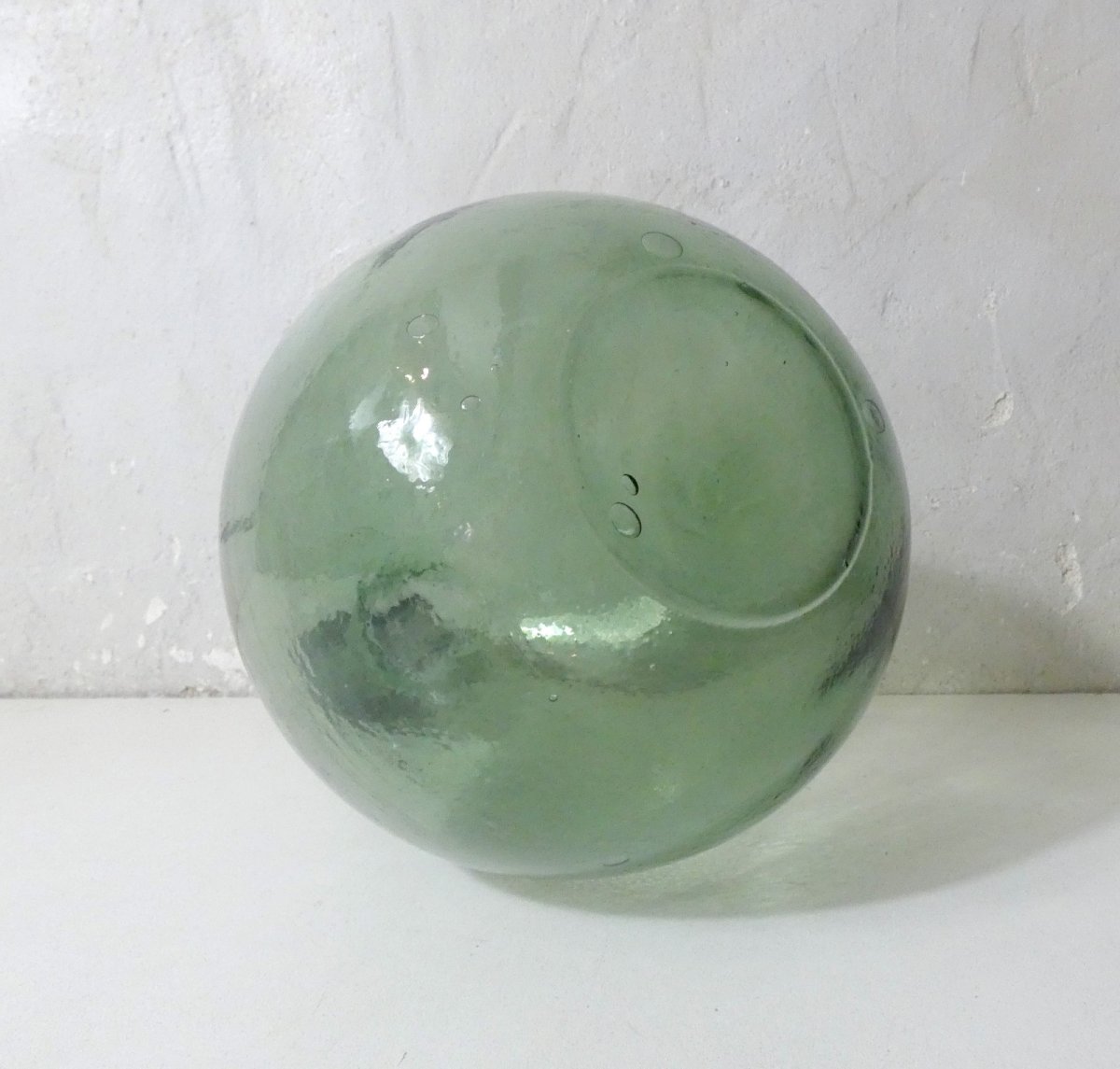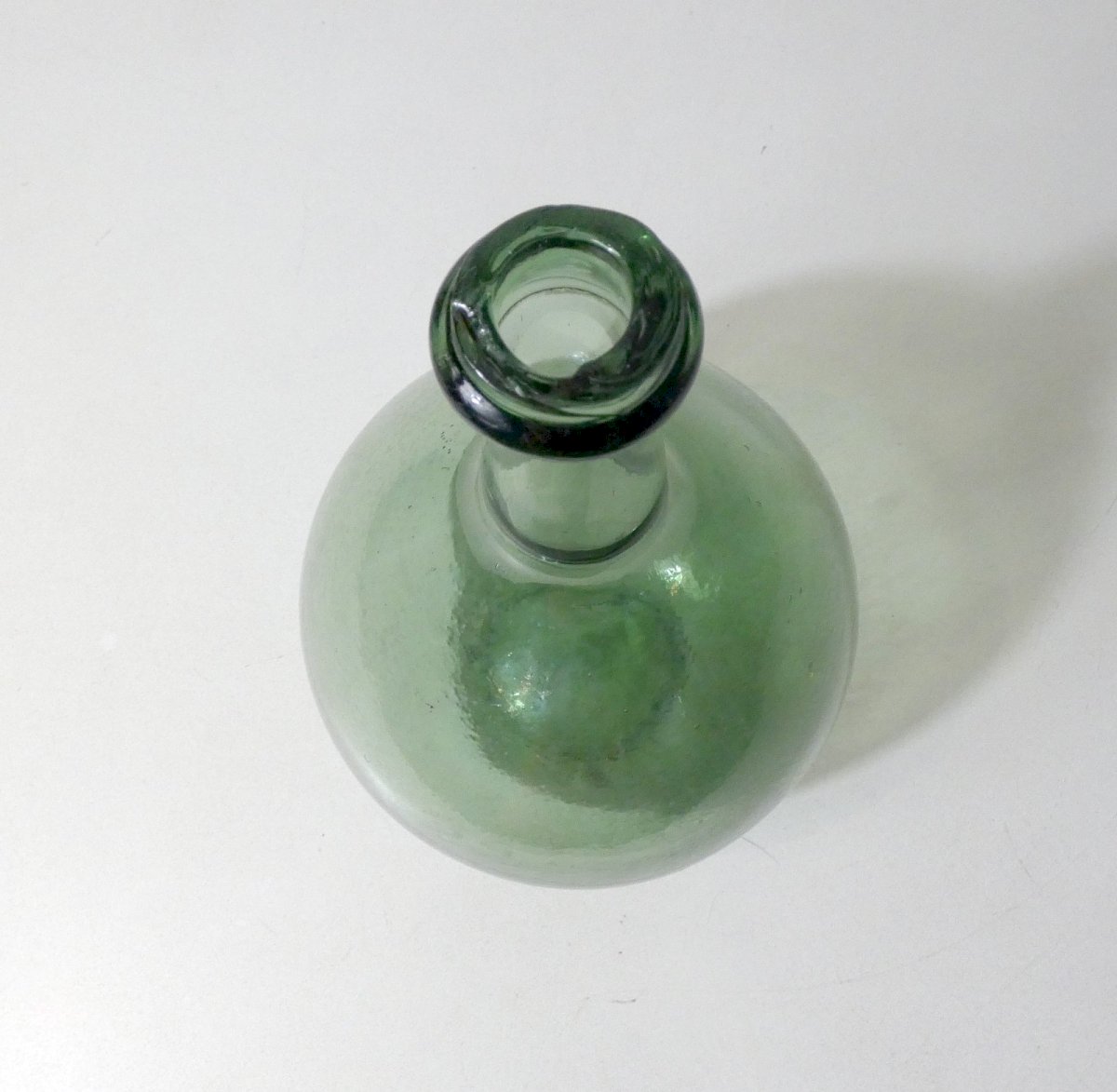 Old green glass demijohn. Height: 31 cm. Diameter: 17 cm. In very good condition. Minor surface wear. Country of origin: Metropolitan France.