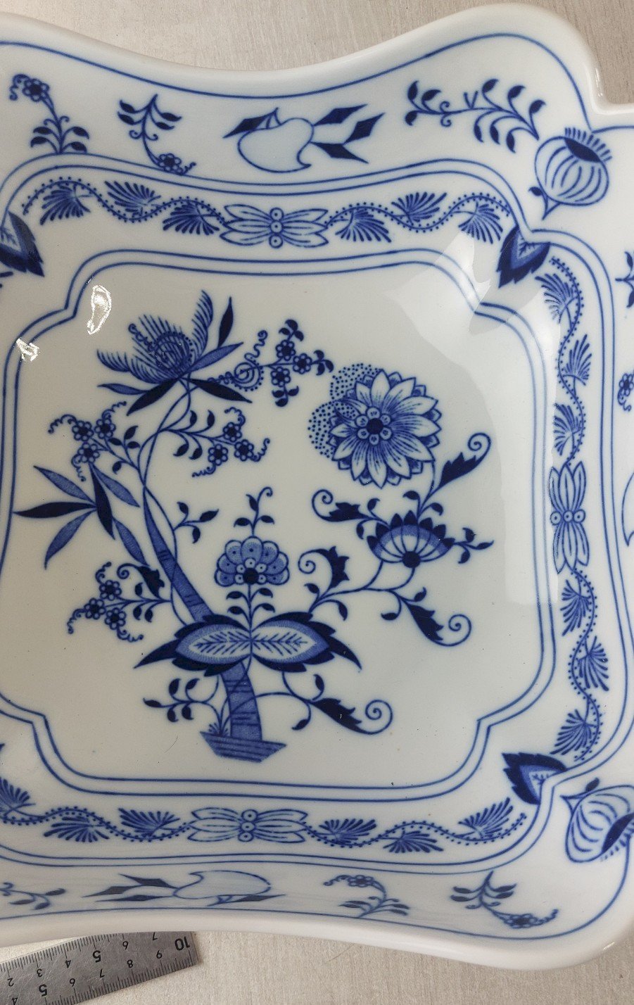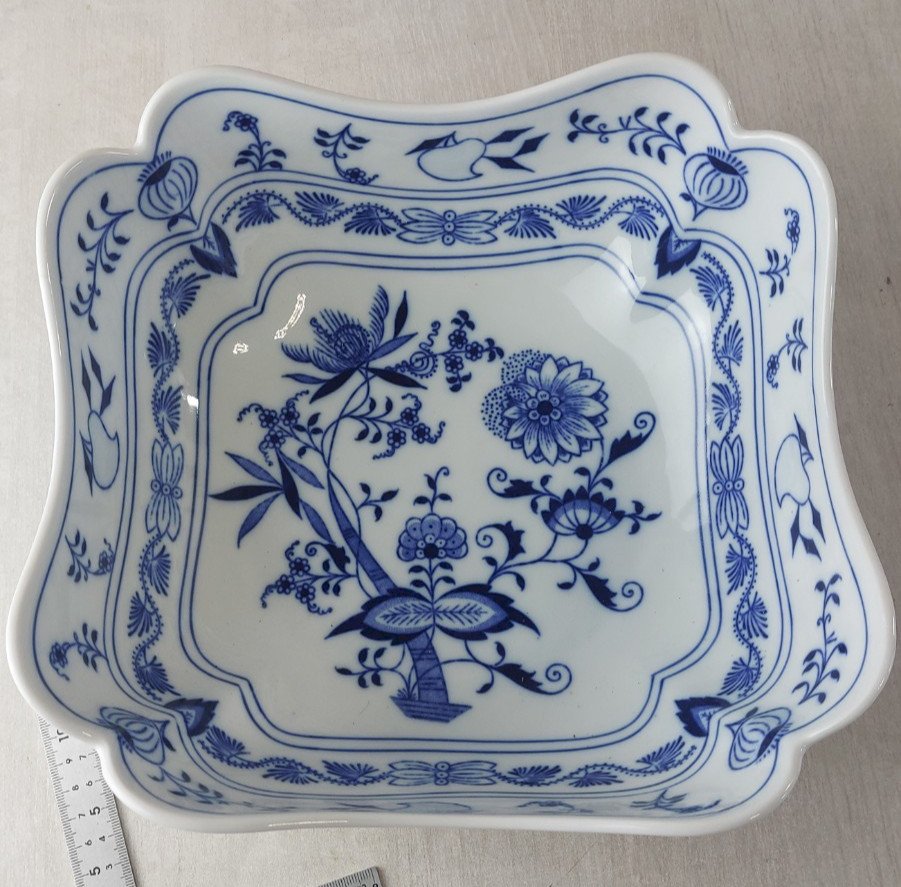 Antique large salad bowl, Blue Onion / onion flowers / Zwiebelmuster decor, made of Czechoslovak porcelain / Czech, Meissen style in very good condition, no cracks or chips, dimensions 25.2 cm X 24.2 cm height 11 cm weight 1.4 kg see photos. Check my other items! Reduction in shipping costs for combined purchases.