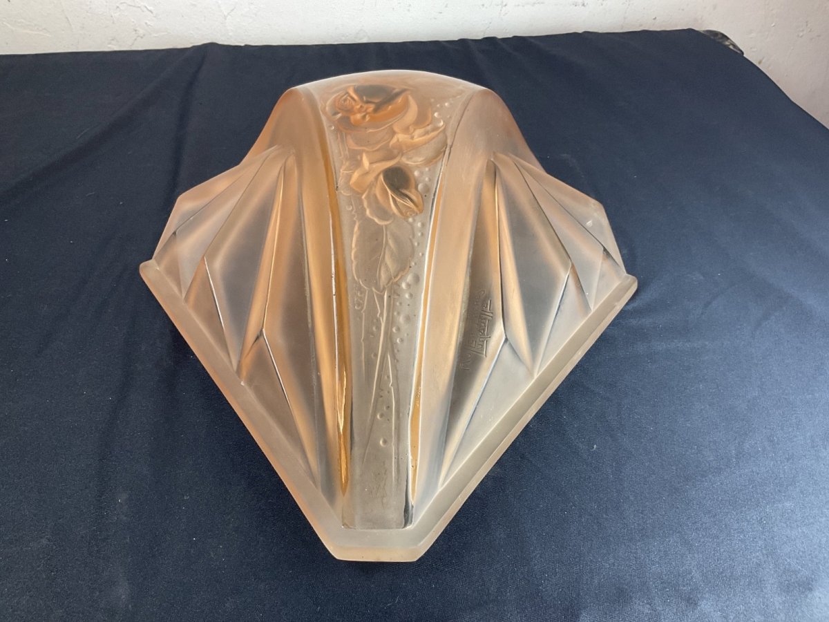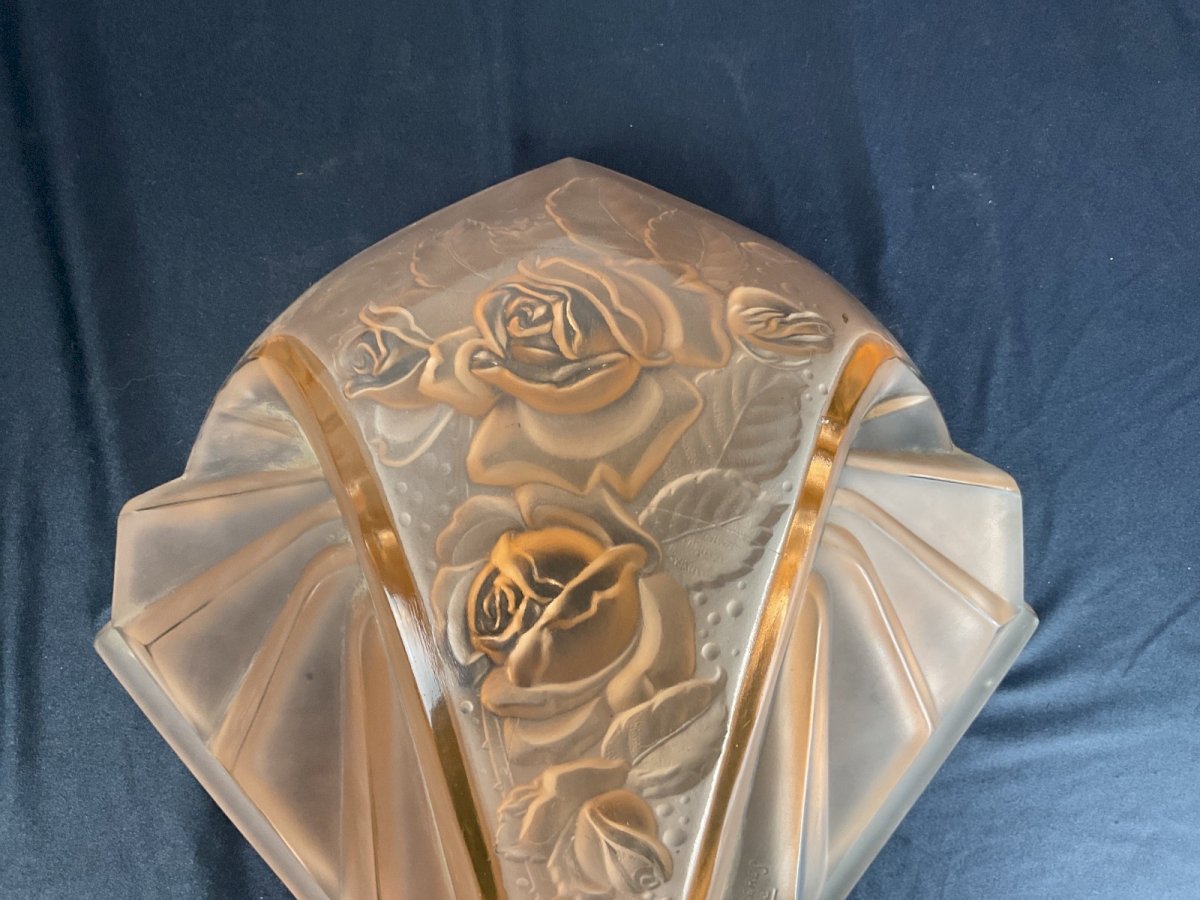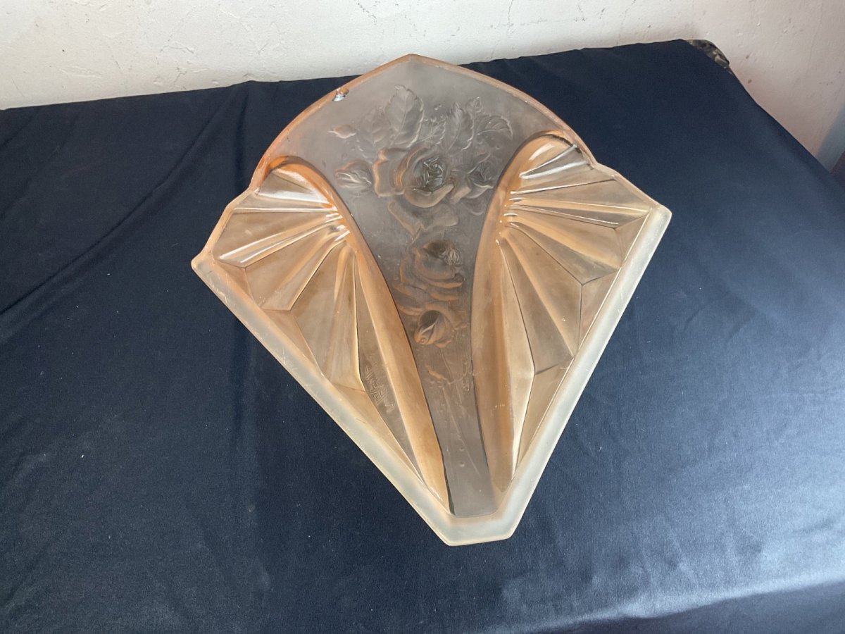 old large wall lamp chandelier Muller Frères Lunéville Art Deco Height: 34 cm Width: 31 cm Note a small chip inside Type: Wall lamp Period: Art Deco Sub-type: Indoor Dominant color: Pink Material: Glass