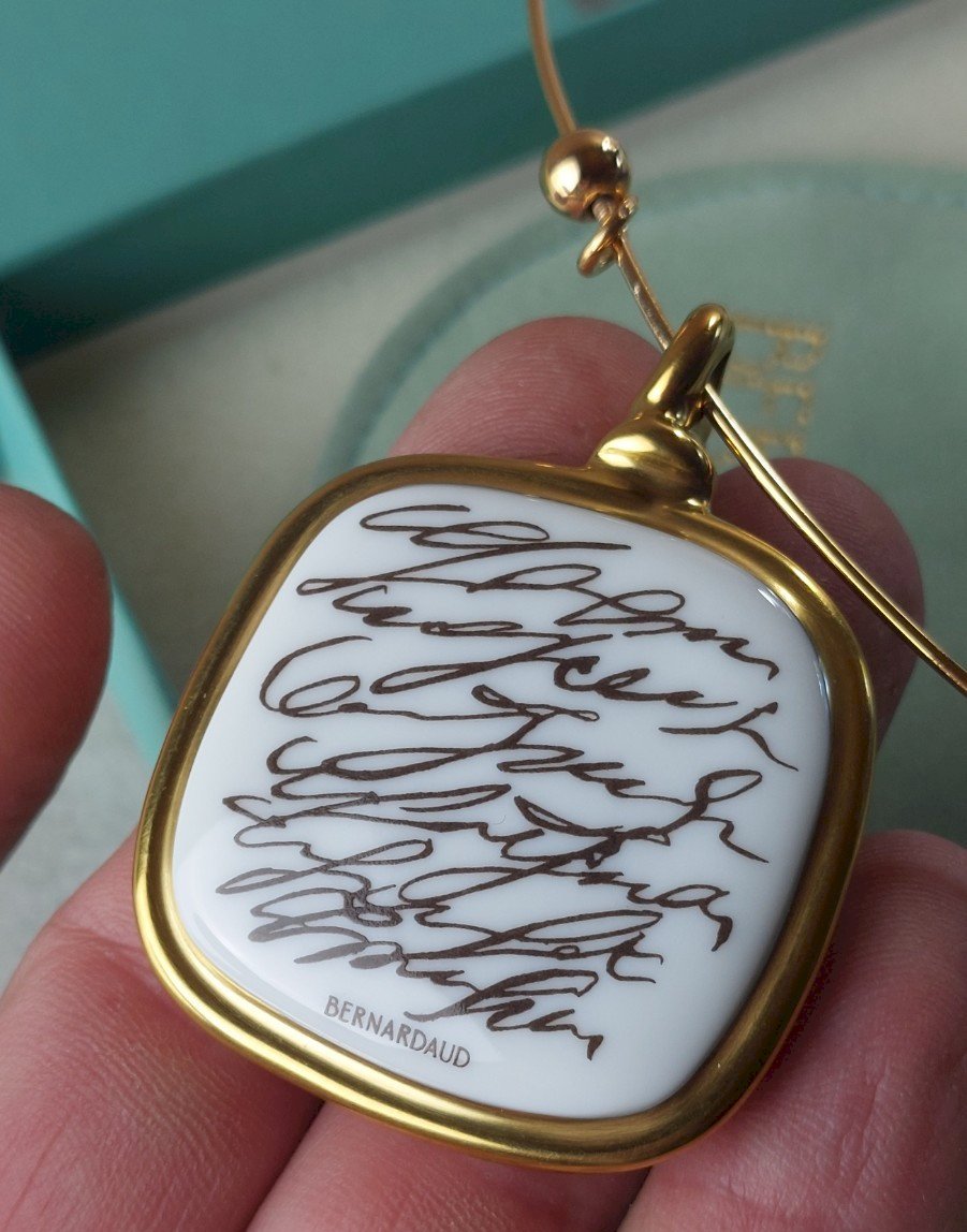 Antique necklace, in gold-plated metal and porcelain, Bernardaud Limoges in very good condition with box (slightly damaged) marked Bernardaud dimensions pendant 4.1 cm X 4.2 cm see photos. Check my other items! Reduced shipping costs for combined purchases. Condition: Used Item has been worn. Any imperfections. Brand: Bernardaud Type: Pendant Necklace Material: Porcelain
