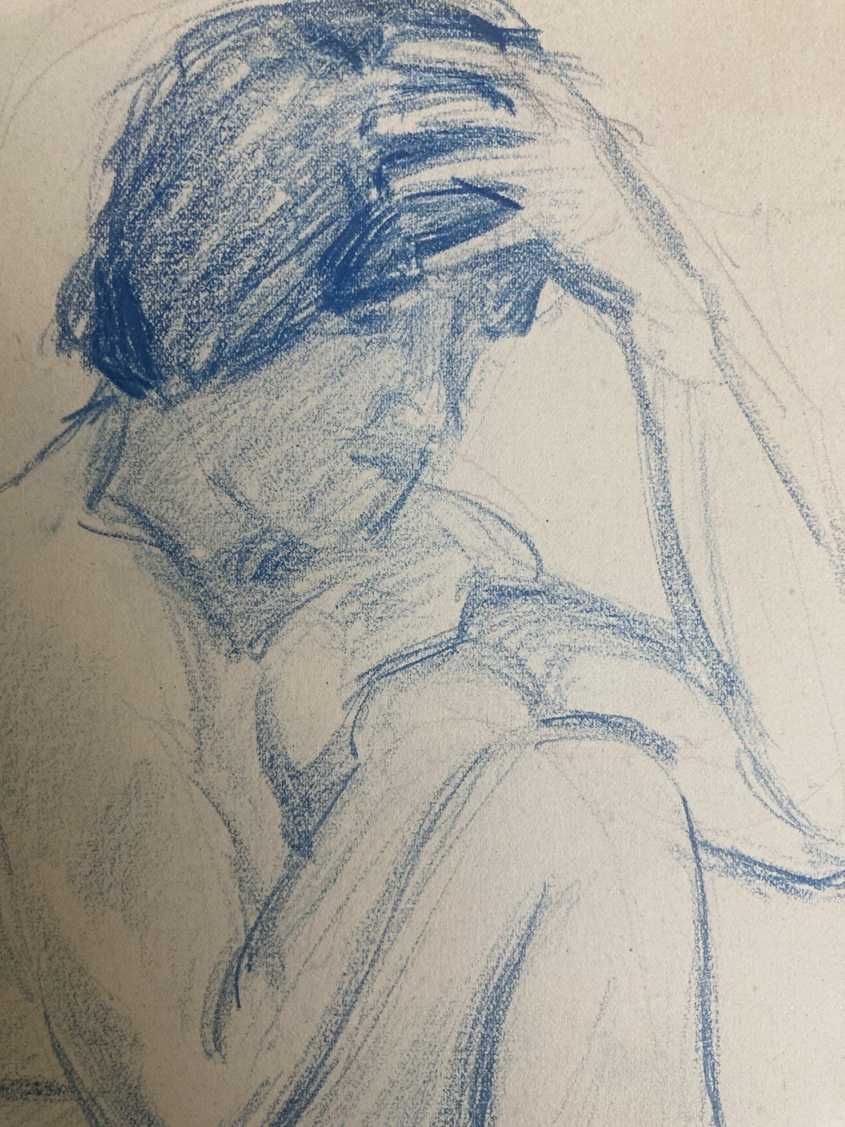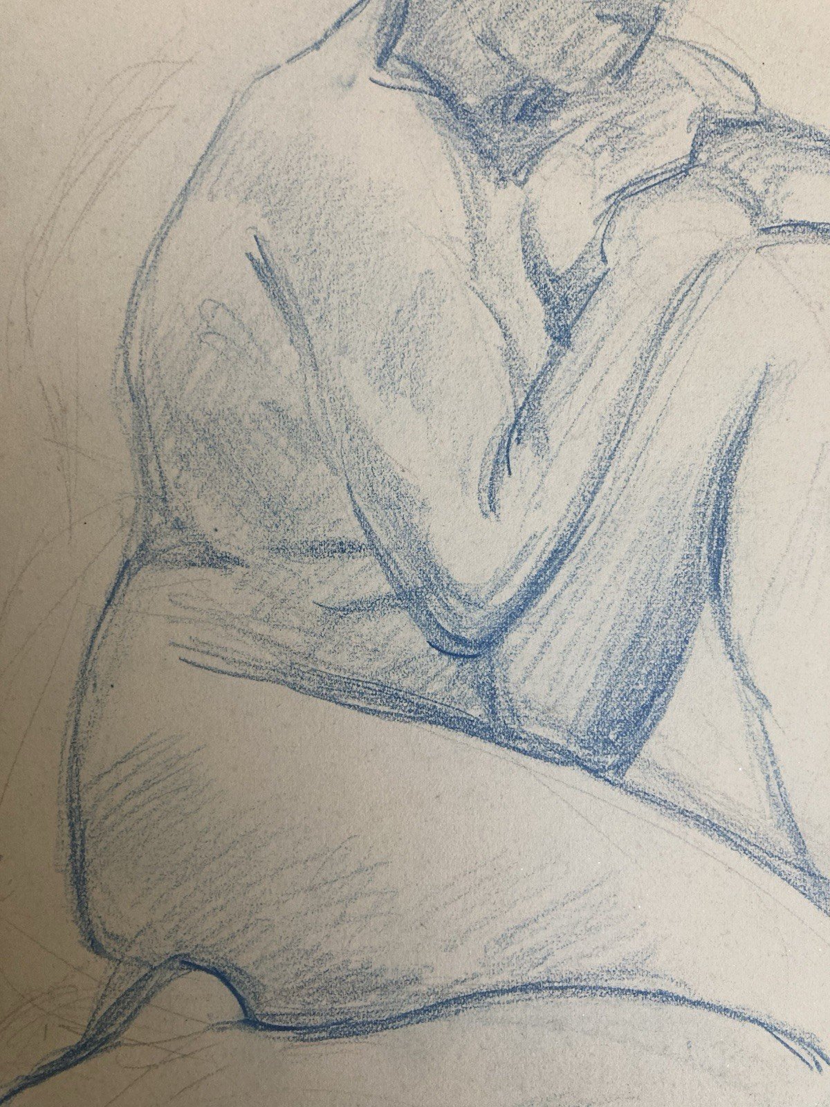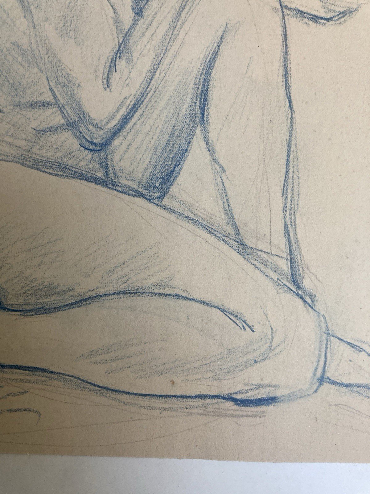Old Nude Drawing Pencil On Paper Woman 1910 Erotic Art Deco Nude Blue Sitting