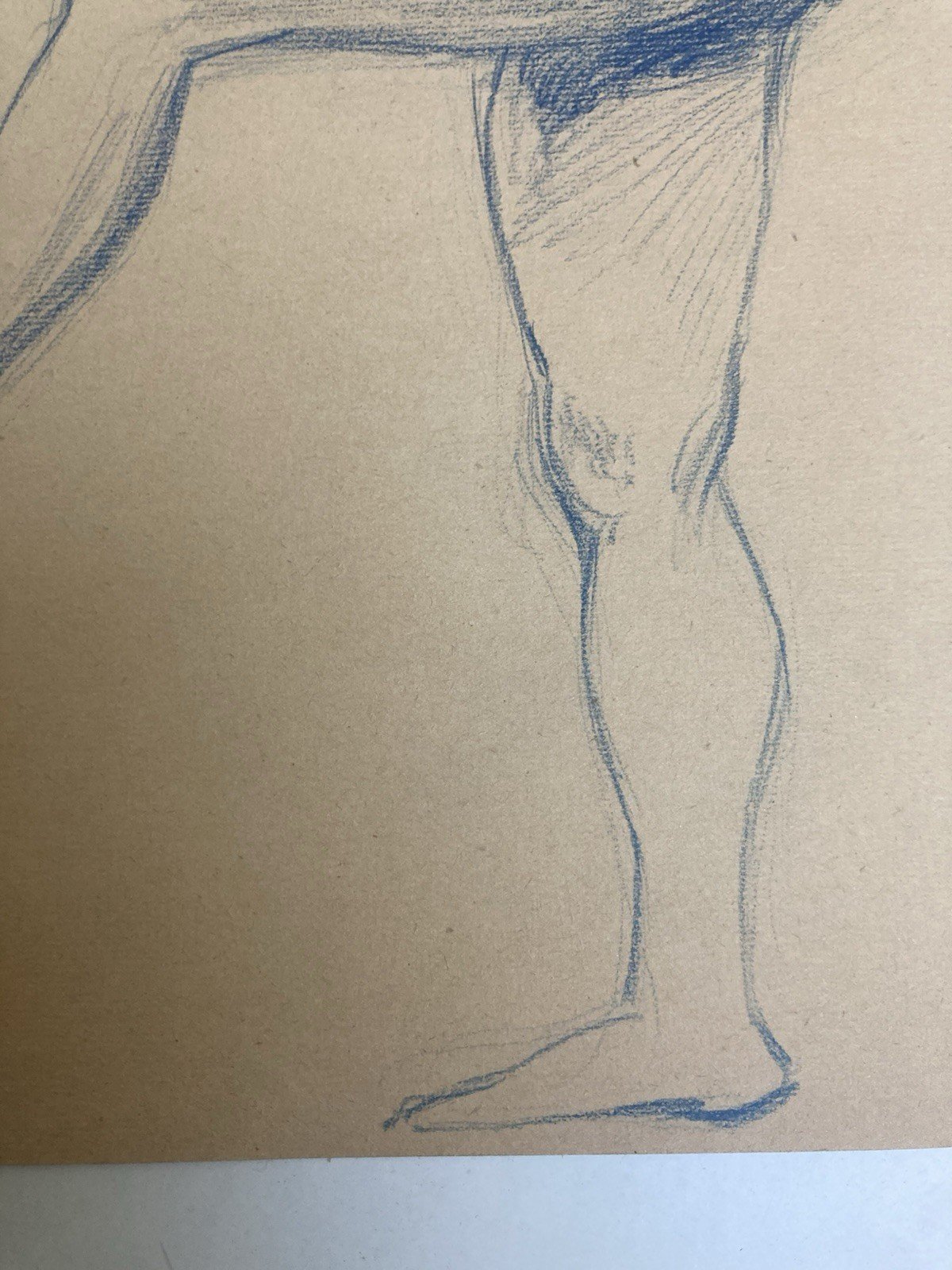 Old Nude Drawing Pencil On Paper Woman 1910 Erotic Art Deco Nude Blue Standing