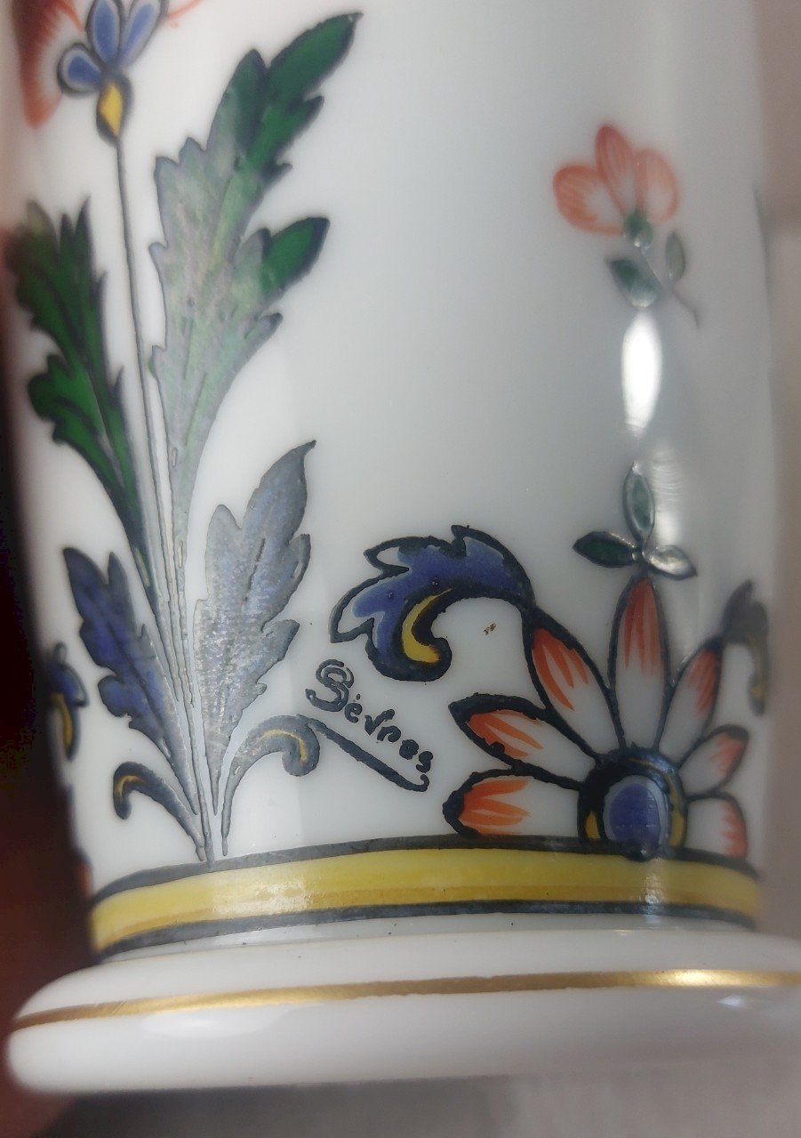 Old opaline vase, painted, Sèvres in good condition, no cracks or chips, signed Sèvres in the decoration, diameter at widest point 9 cm, height 25 cm, weight 1 kg, see photos. Check out my other items! Shipping cost reduction for bulk purchases. Country of origin: France Brand: Sèvres