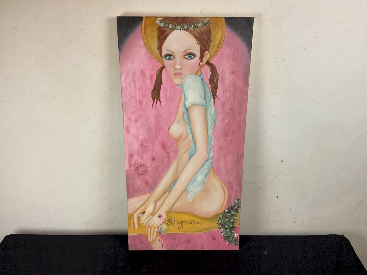 Old Painting to Identify Portrait of Nude Woman Erotic Painting Dimension: 60 x 30 cm Genre: Impressionism Characteristics: Signed, On panel Theme: Portrait, Self-portrait