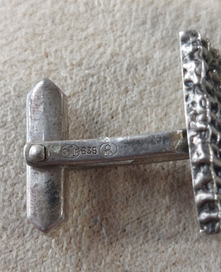 Vintage pair of cufflinks, in 835 silver, Mecan in good condition marked 835, Mecan, several hallmarks dimensions 2 cm X 1.2 cm total weight 10 g see photos Check out my other items! shipping cost reduction for bulk purchase Condition: Used - Good condition This item shows imperfections and visible signs of wear, such as scratches, dents, broken or missing parts. All imperfections must be shown and described in the seller's listing. Brand: Mecan Dominant color: Silver Material: 835 silver Country of origin: France