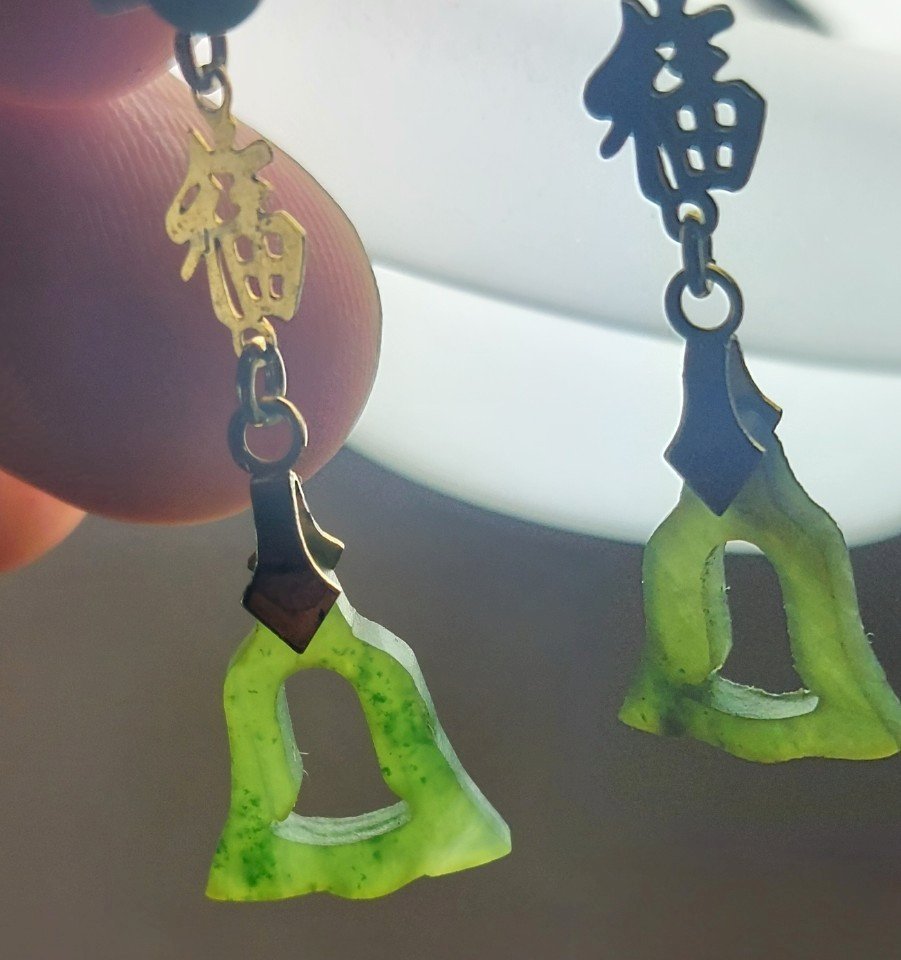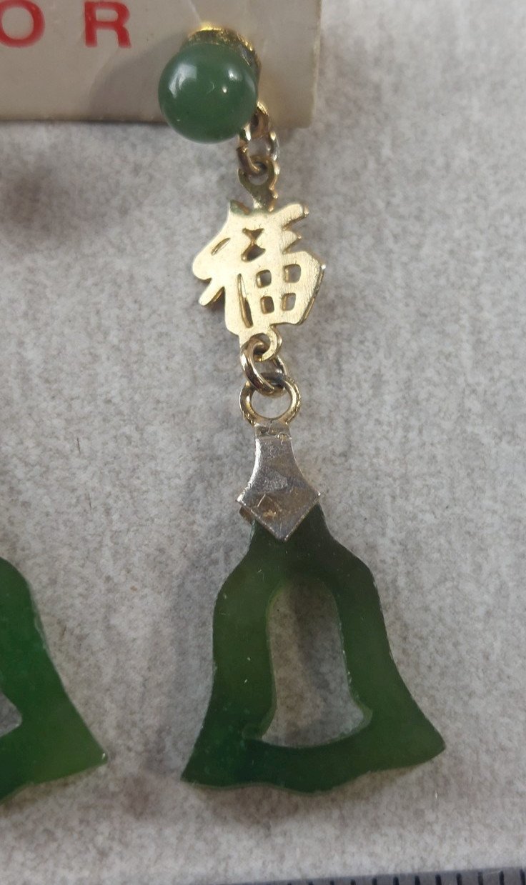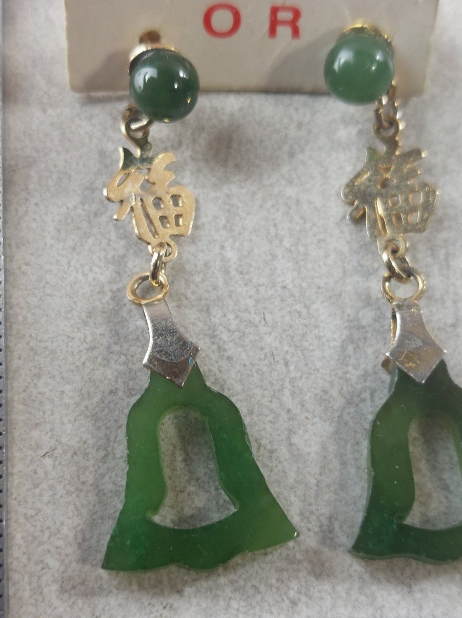 Vintage pair of earrings, jade stones, China, gold-plated in good condition, unmarked, height 4.1 cm, see photos. Check my other items! Reduced shipping cost for bulk purchases. Condition: Used, item has been worn. Possible imperfections. Country of origin: China.