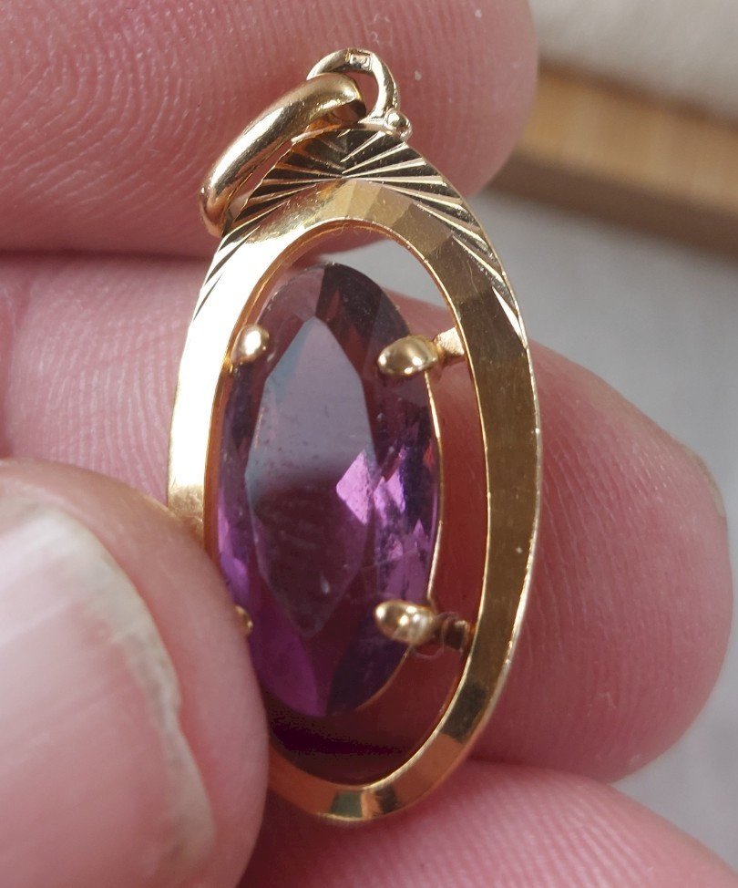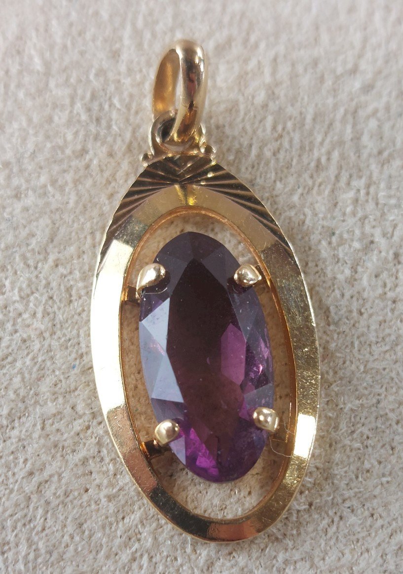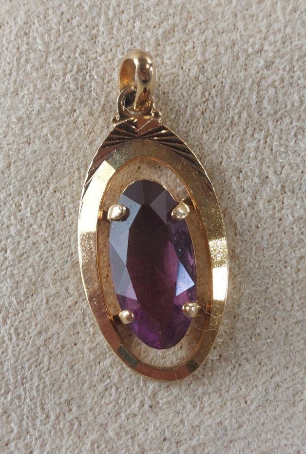 Old pendant, purple stone, gold plated, vintage in good condition, a hallmark to be identified, dimensions 2.5 cm X 1.4 cm see photos. Check out my other items! Shipping cost reduction for bulk purchases. Condition: Used item that has been worn. Possible imperfections.