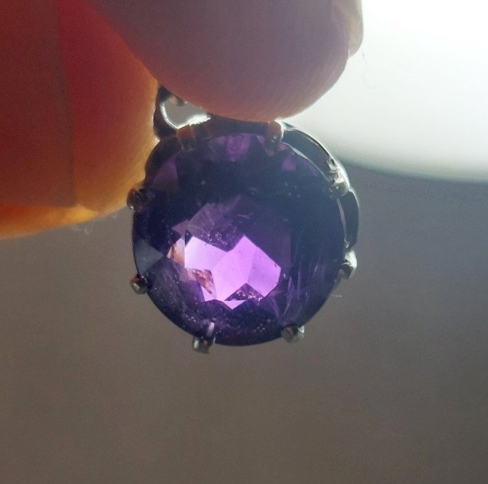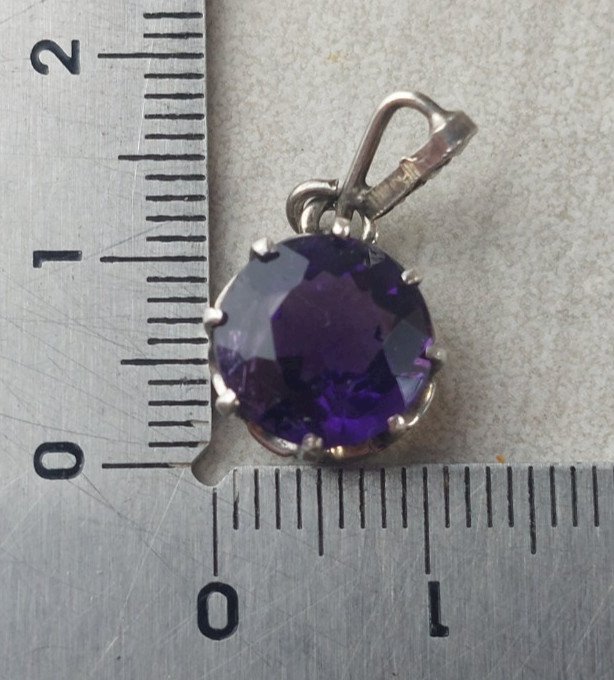 Vintage pendant, purple stone, silver-plated metal in good condition unmarked diameter 1.1 cm see photos Check out my other items! Discount on shipping costs for multiple purchases Condition: Used Item has been worn. any imperfections.