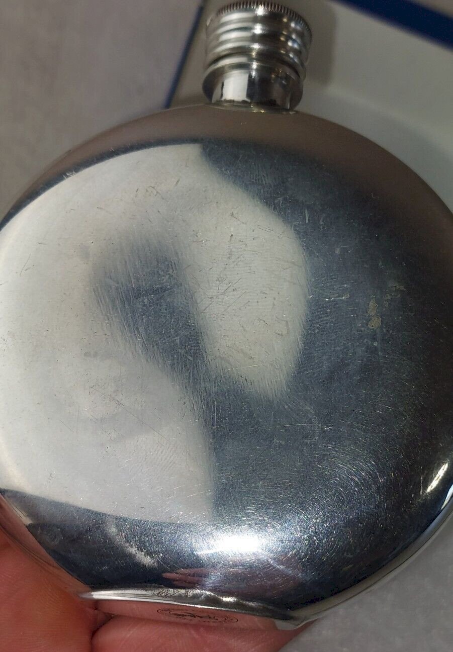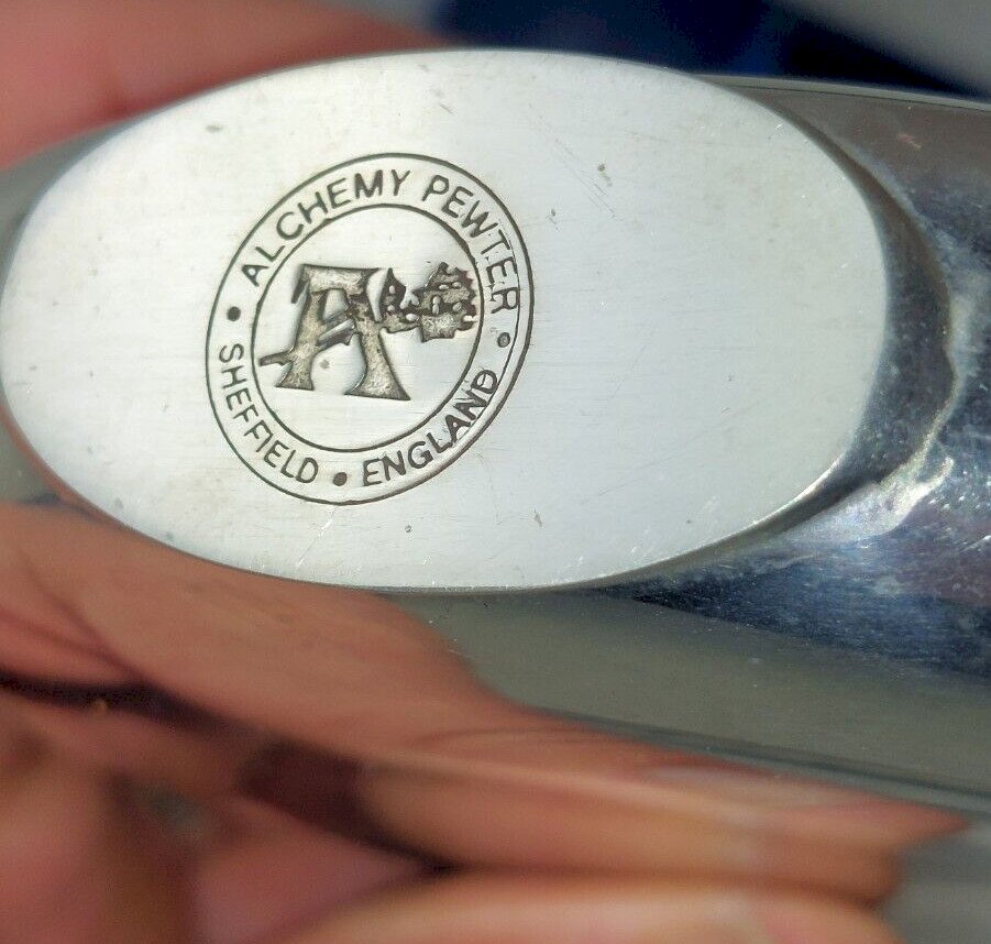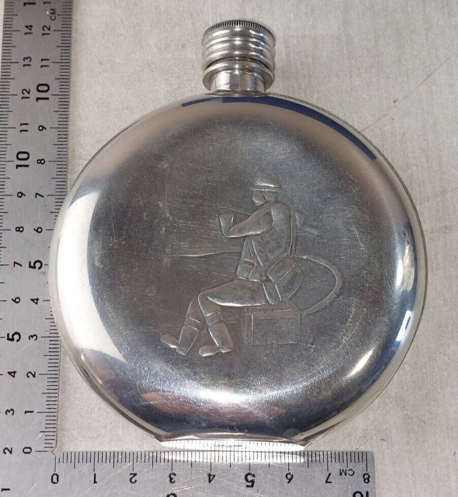Antique pewter flask, Alchemy Sheffield in good condition, some wear, width 9.6 cm, height 11.4 cm, see photos. Check out my other items! Reduced shipping costs for combined purchases. Brand: Alchemy Pewter Origin: United Kingdom Material: Pewter