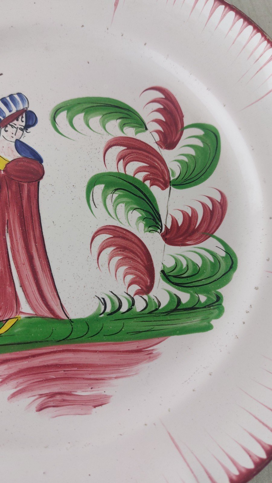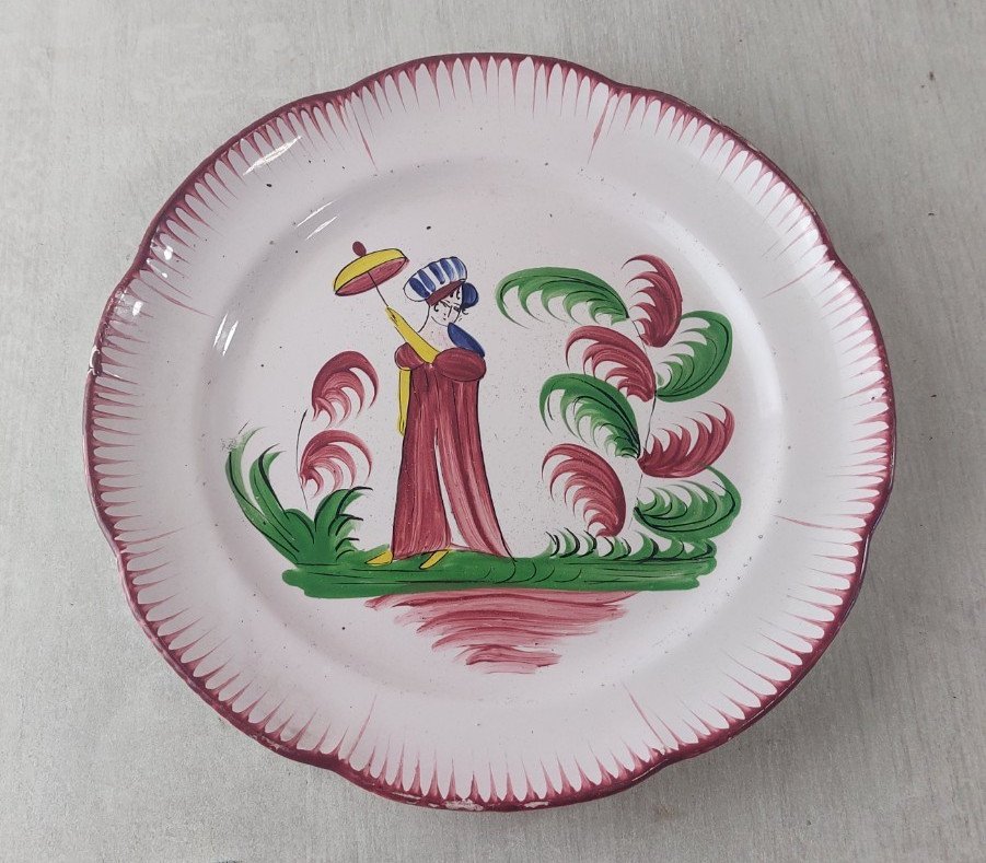 Antique plate, decoration 'Madame Bernard with parasol', earthenware from the East / Islettes in good condition, no cracks or chips, some scratches / missing glaze on the edges, unmarked, diameter 23.2 cm. See photos. Check out my other items! Reduced shipping costs for combined purchases. Country of origin: France.